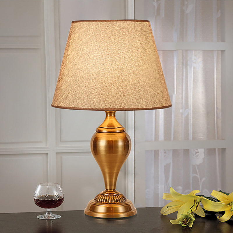 Modern Transitional Round Fabric Shade Hardware Base 1-Light Table Lamp For Bedroom