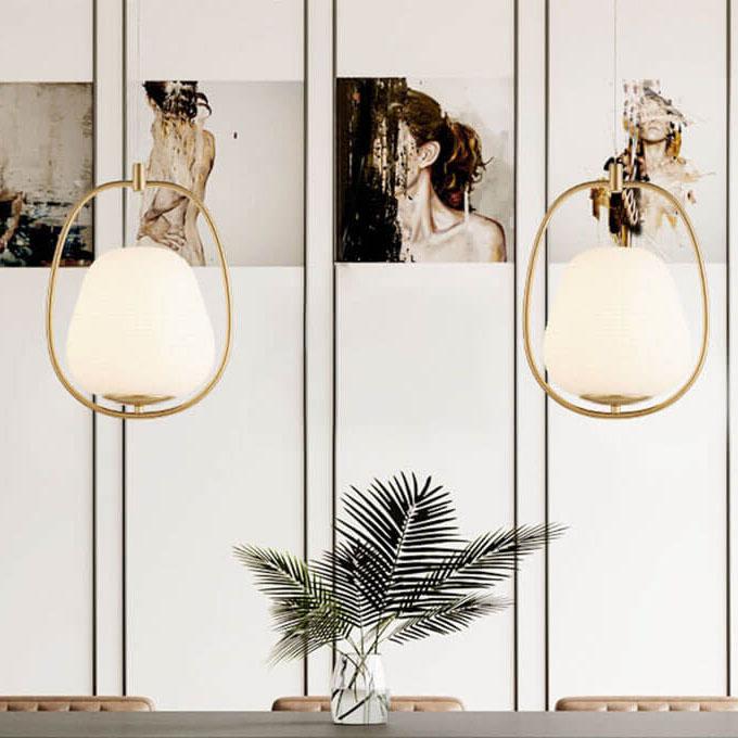 Nordic Creative Oval Glass Ball Gold Ring Pendant Light