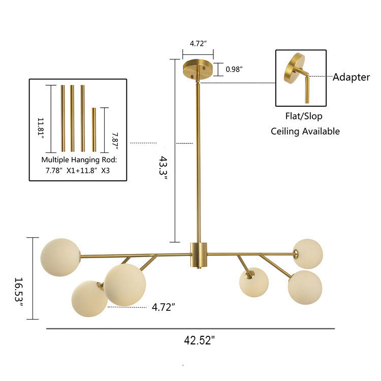 Nordic Creative Tree Branch Glass Round Ball 6-Light Island Light Chandelier