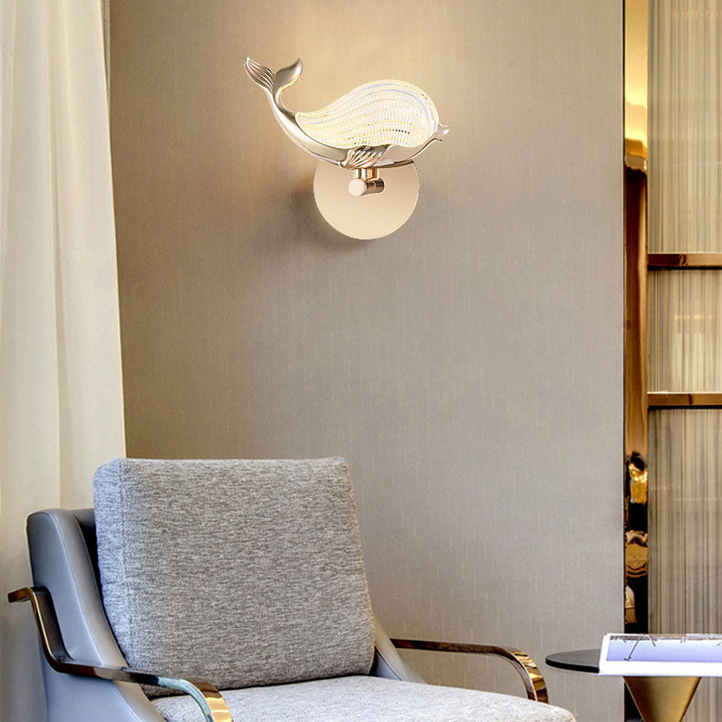 Nordic Light Luxury Creative Aluminum Whale LED Wall Sconce Lamp
