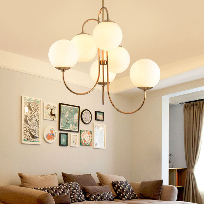 Nordic Light Luxury Minimal 6-Light Iron Glass Chandelier