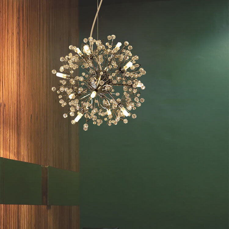 Contemporary Nordic Light Luxury Round Ball Stainless Steel Crystal LED Chandelier For Hallway