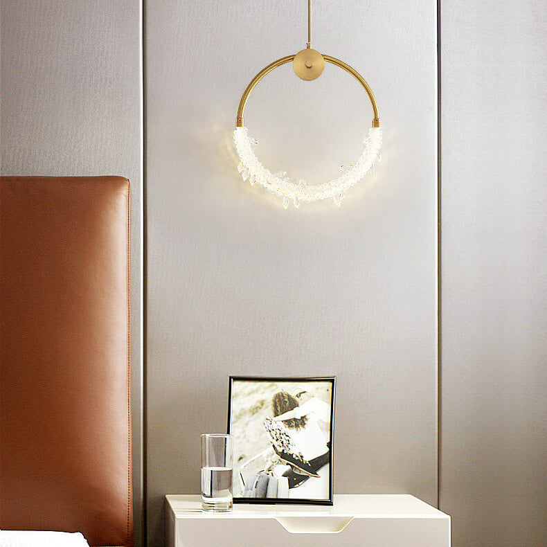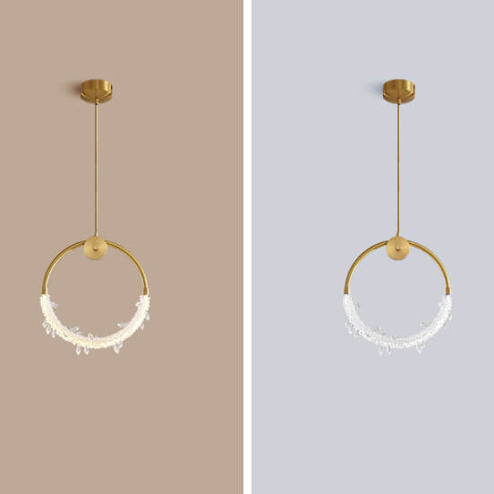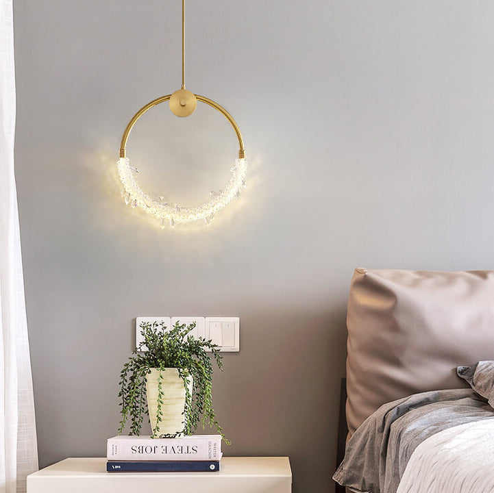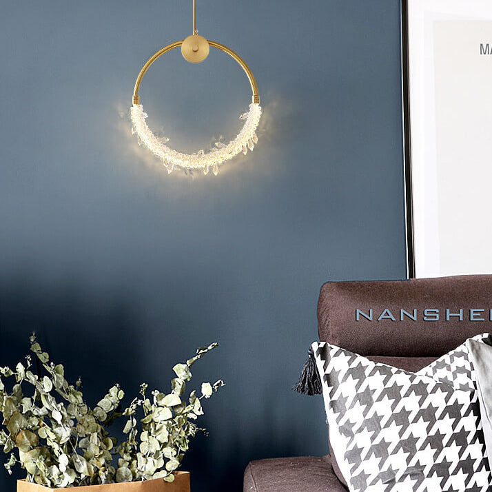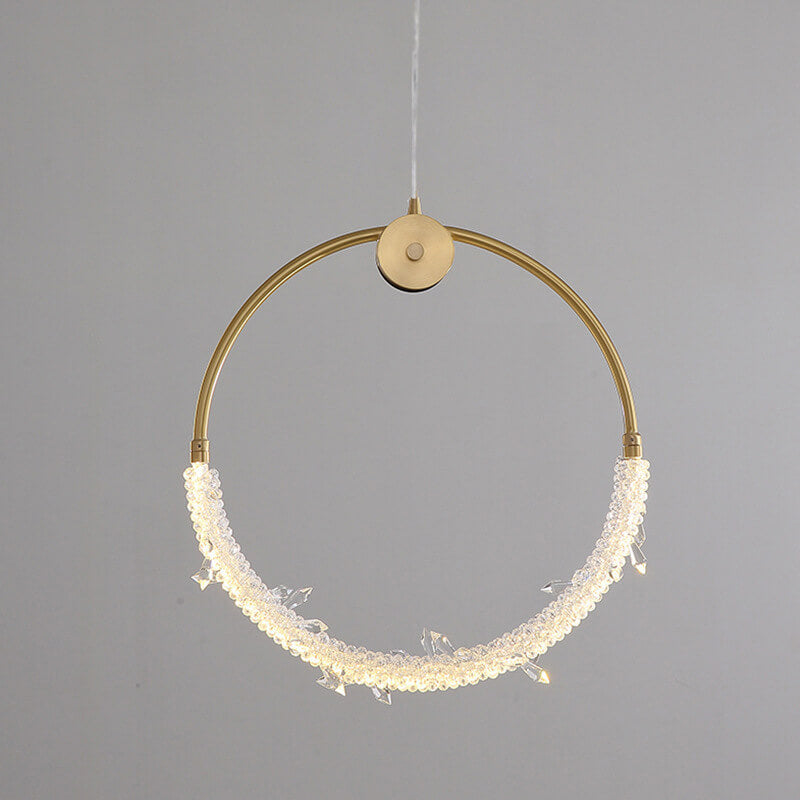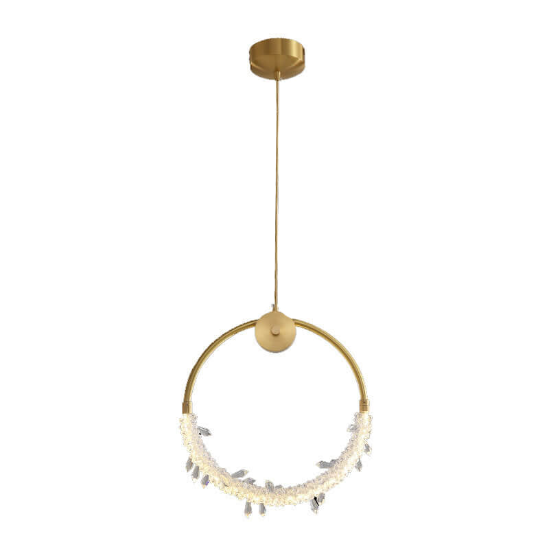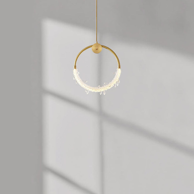 Nordic Luxury Circle Brass Ice Crystal LED Pendant Light