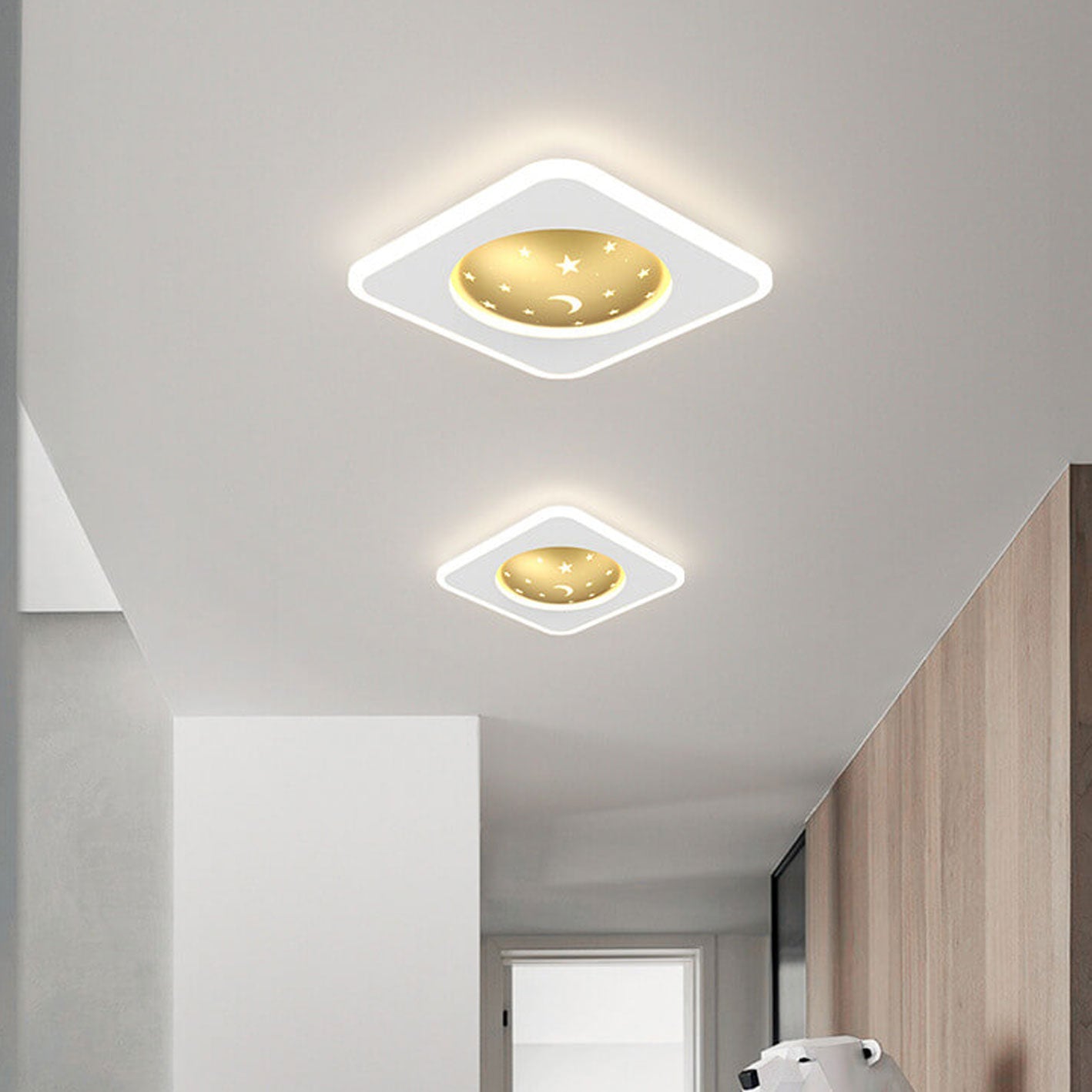 Nordic Minimalist Starry Sky Square Round Wrought Iron Aluminum LED Flush Mount Ceiling Light