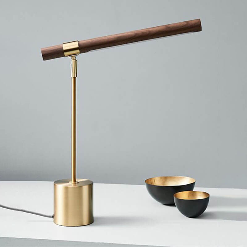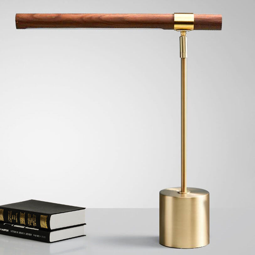 Nordic Minimalist Wood Grain Cylindrical Strip Hardware Base LED Table Lamp