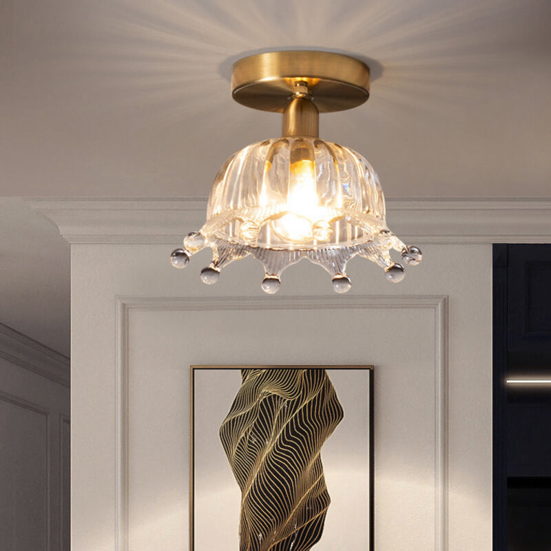 Nordic Simple Creative All-Copper Flower-Shaped 1-Light Semi-Flush Mount Ceiling Light