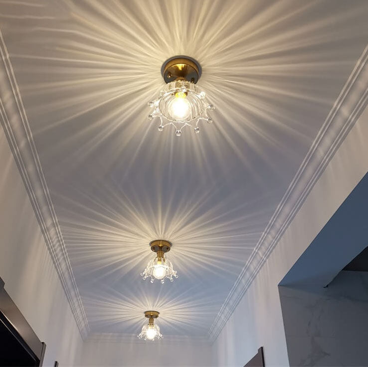 Nordic Simple Crown Glass Brass 1-Light Pendant Ceiling Light