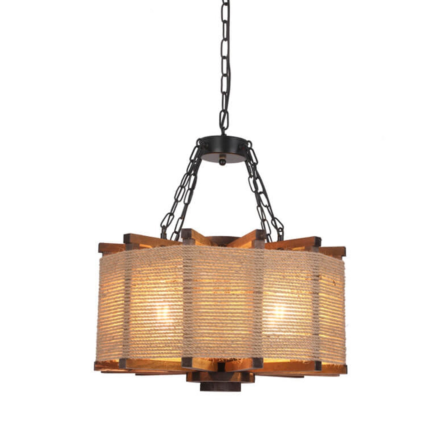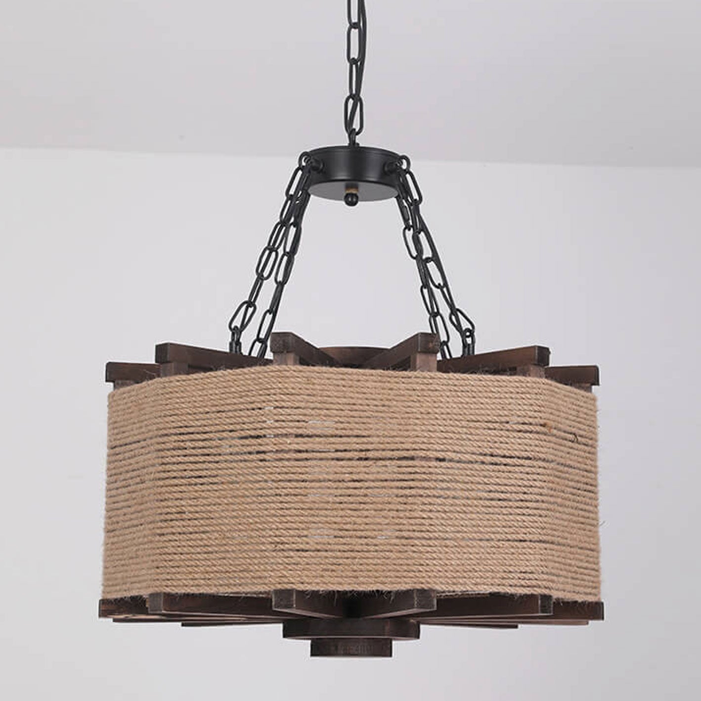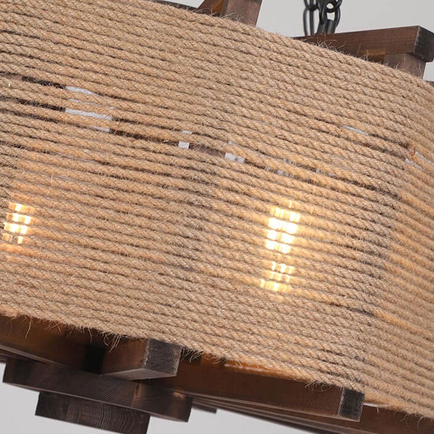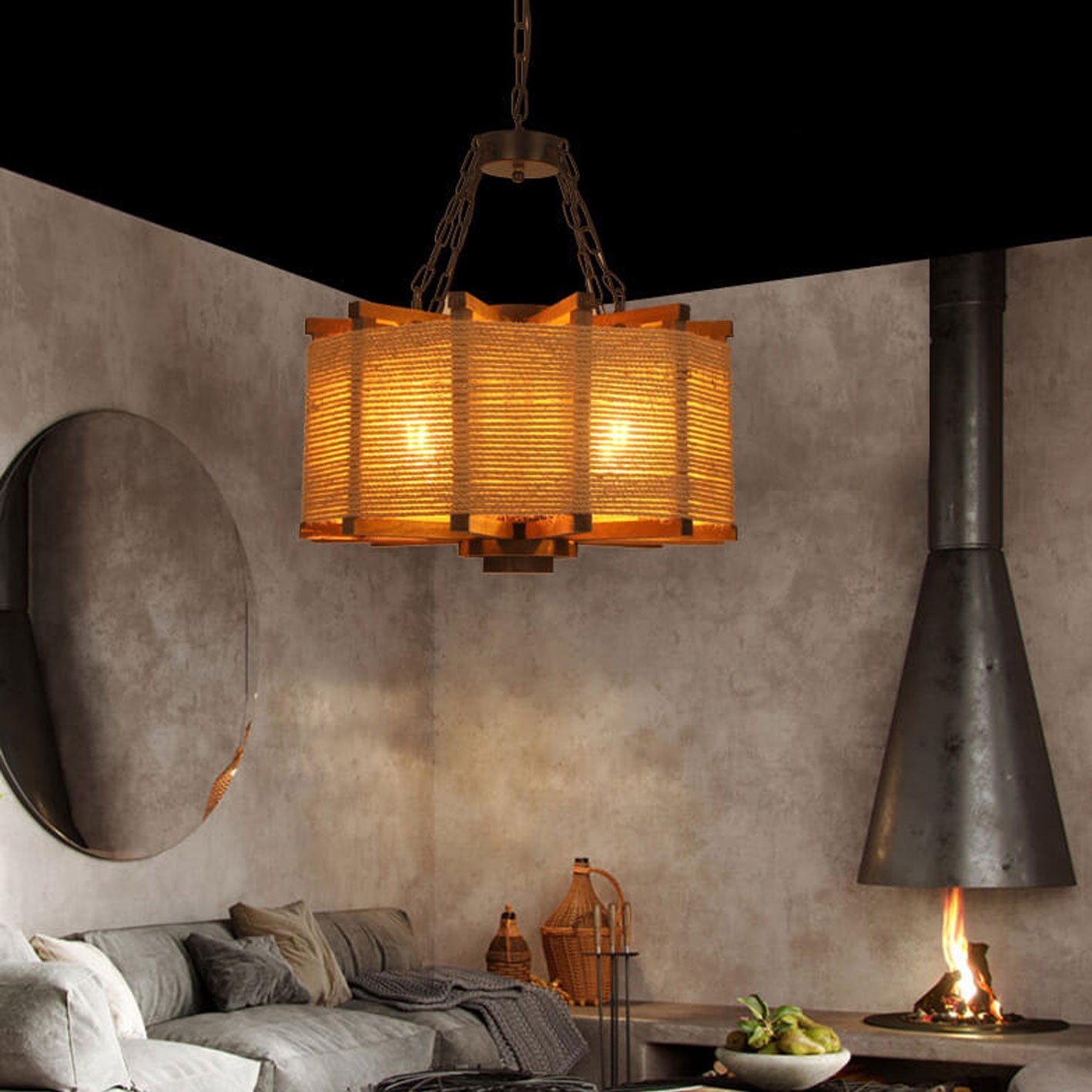 Northern Retro Industrial Wrought Iron Hemp Rope 4-Light Chandelier