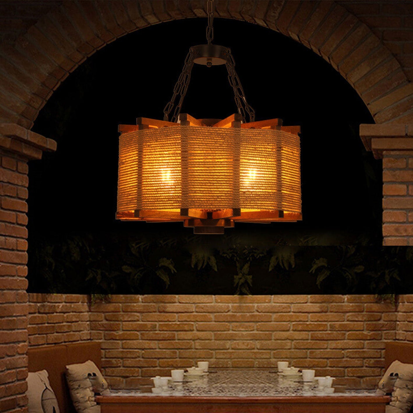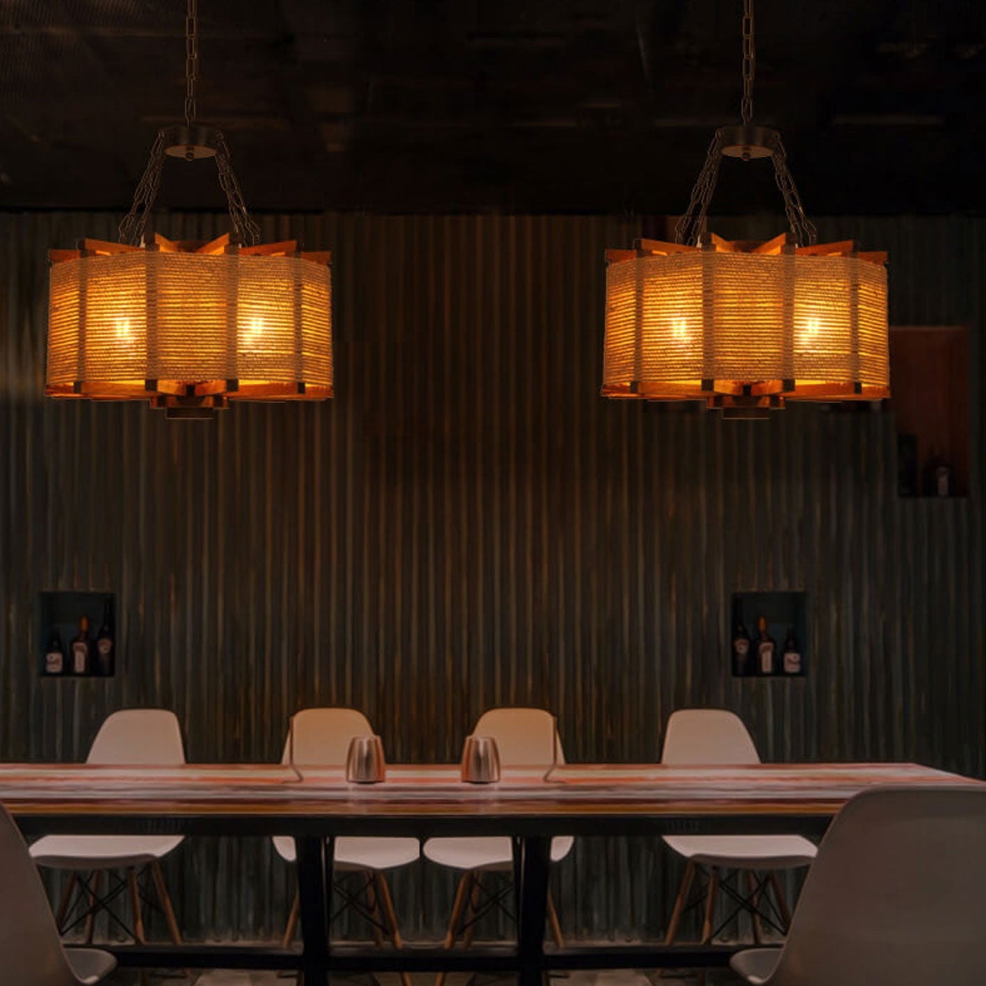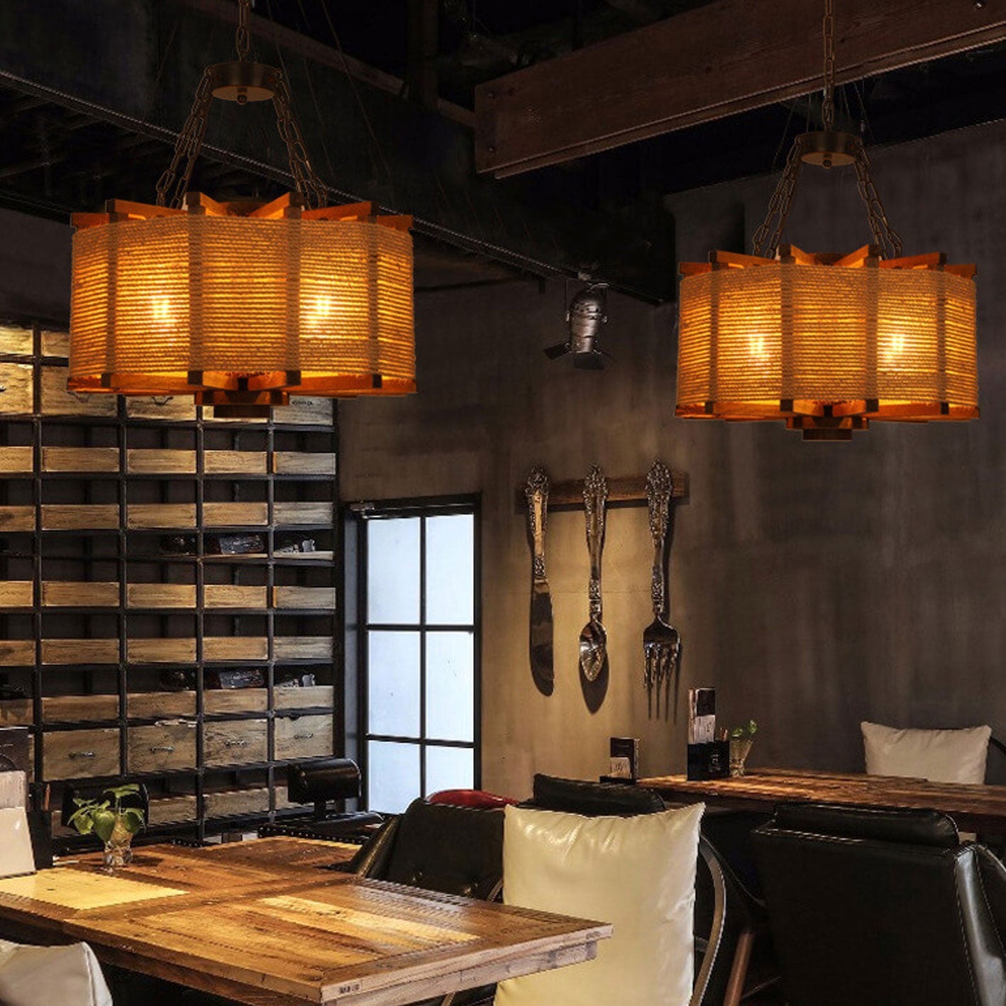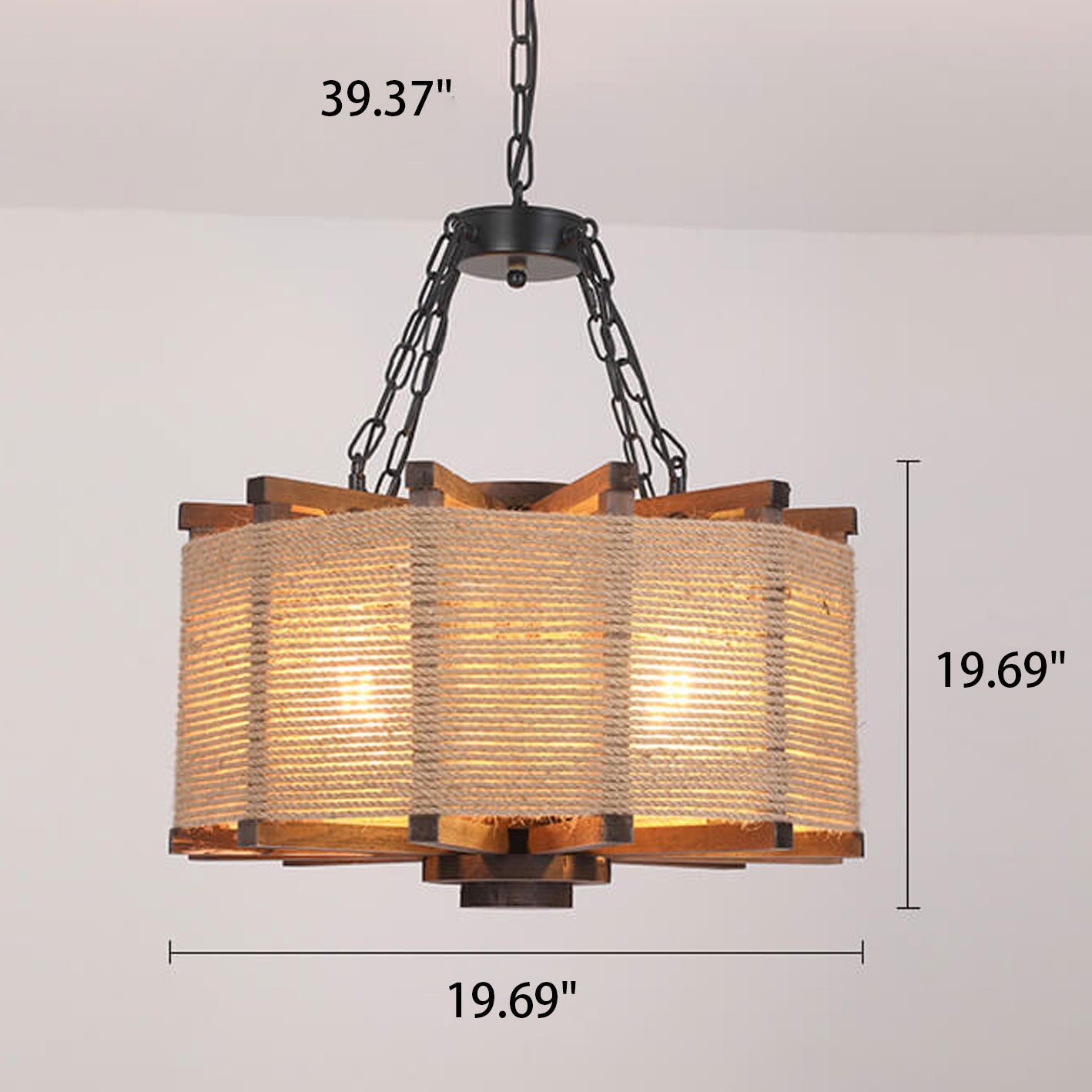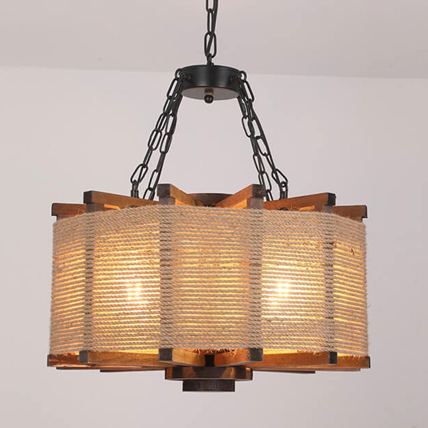 Northern Retro Industrial Wrought Iron Hemp Rope 4-Light Chandelier