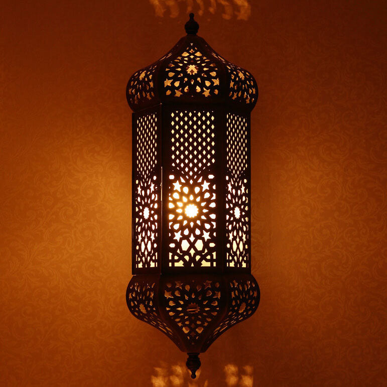 Retro Hollowed Column Copper Moroccan 1-Light Wall Sconce Lamp