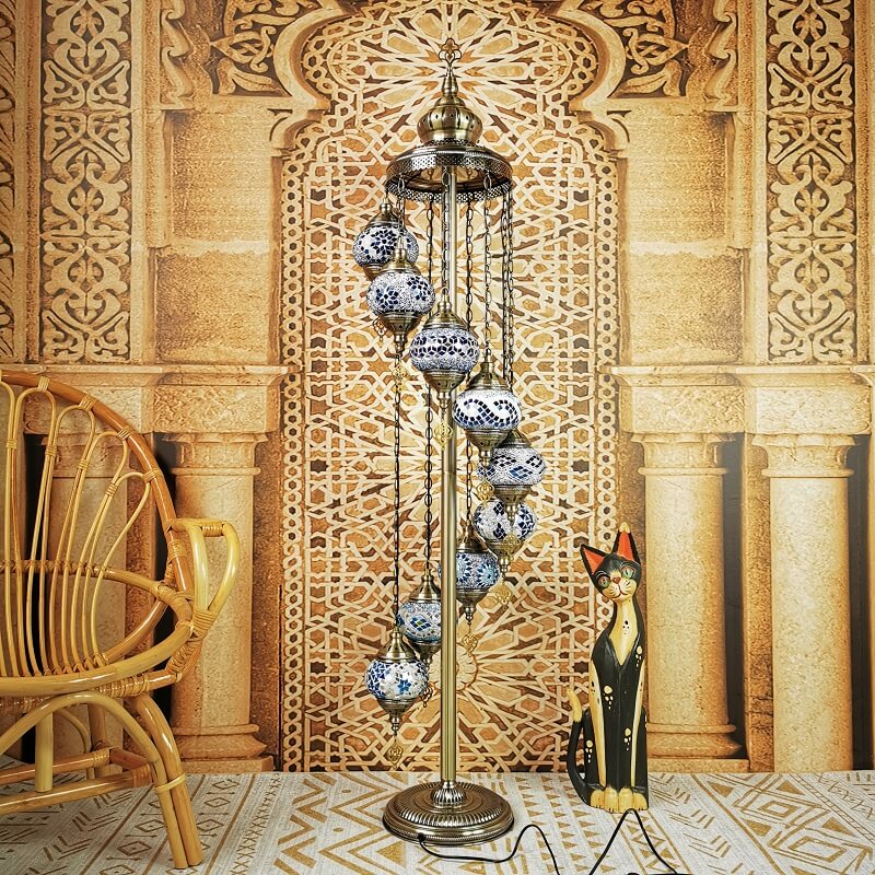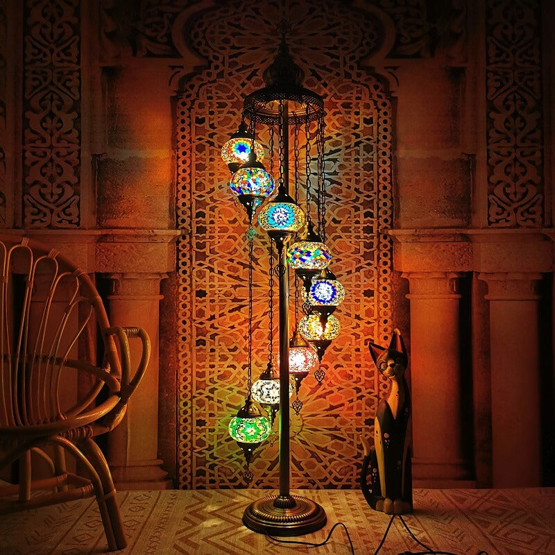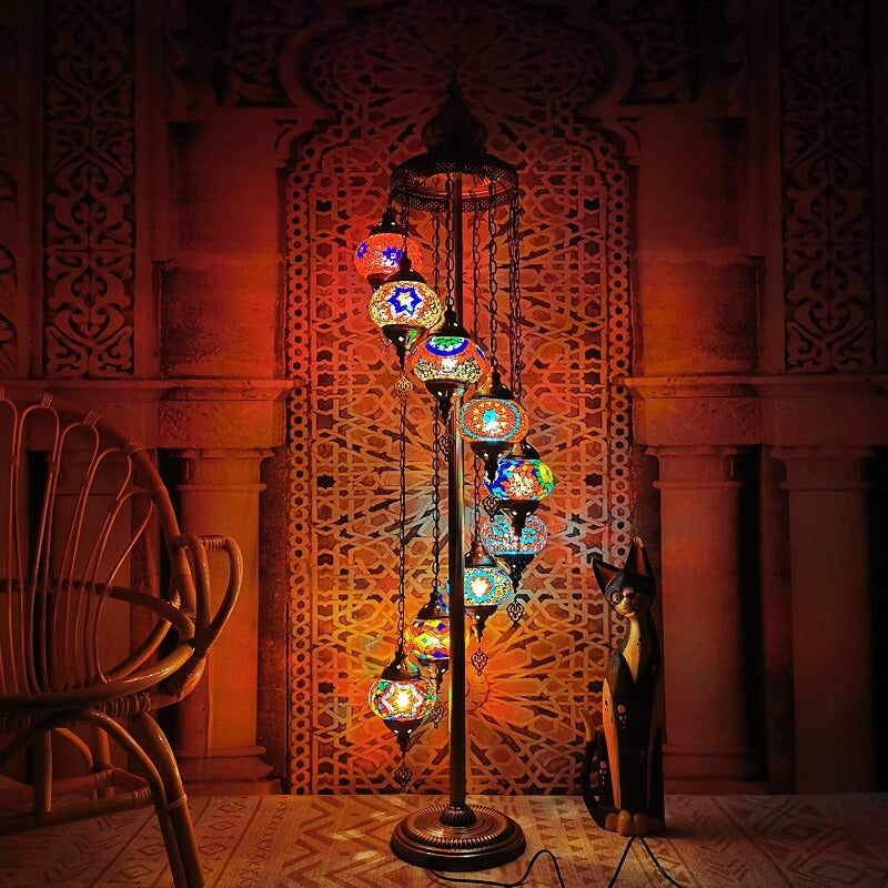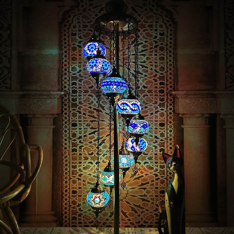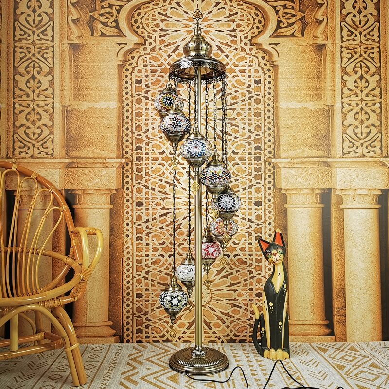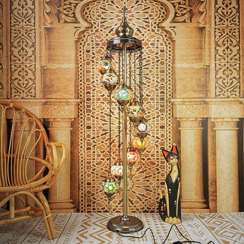 Retro Turkish Moroccan Globe 9-Light Standing Floor Lamp