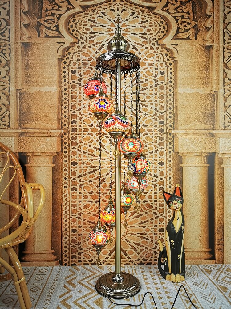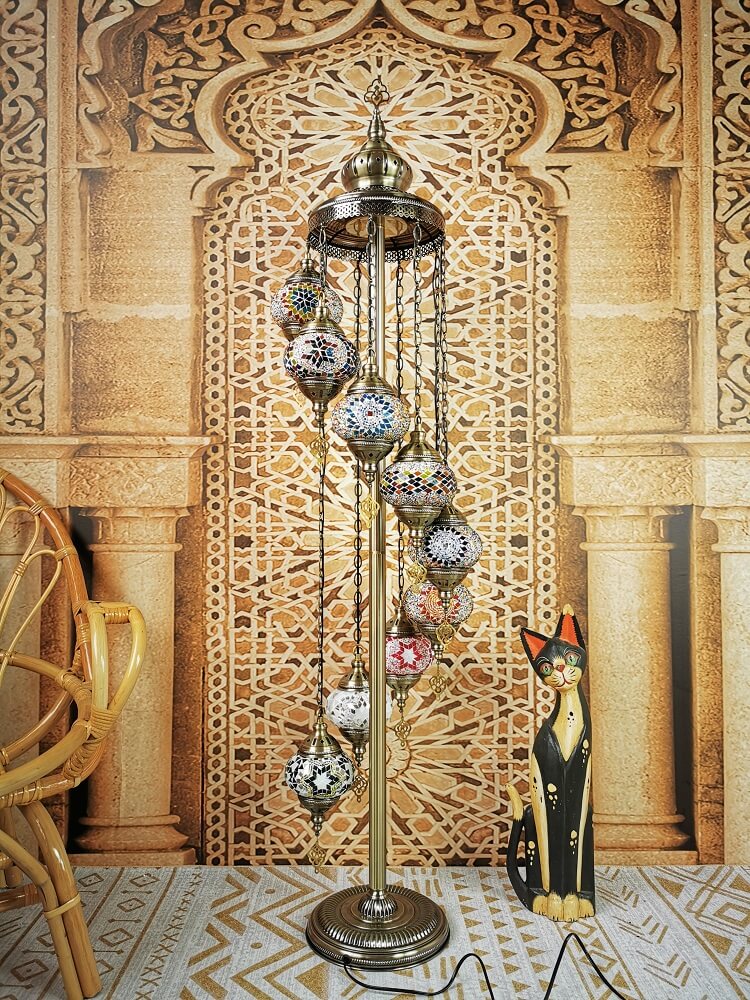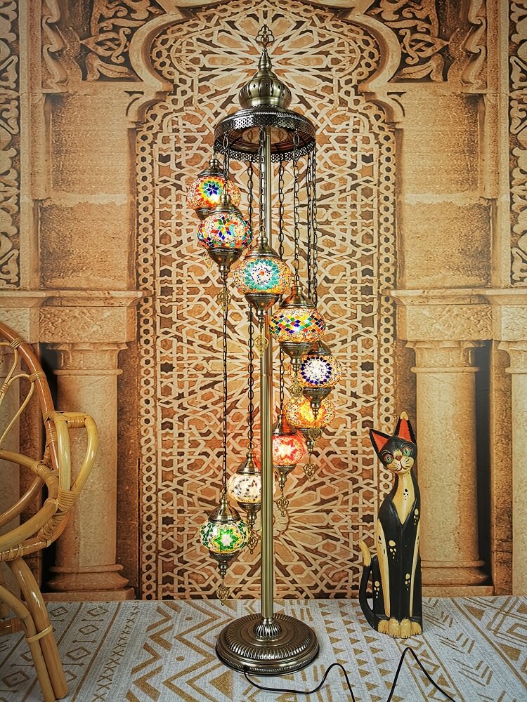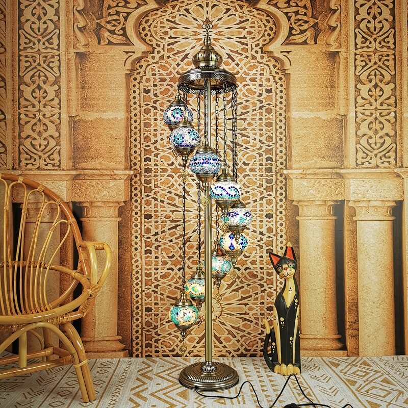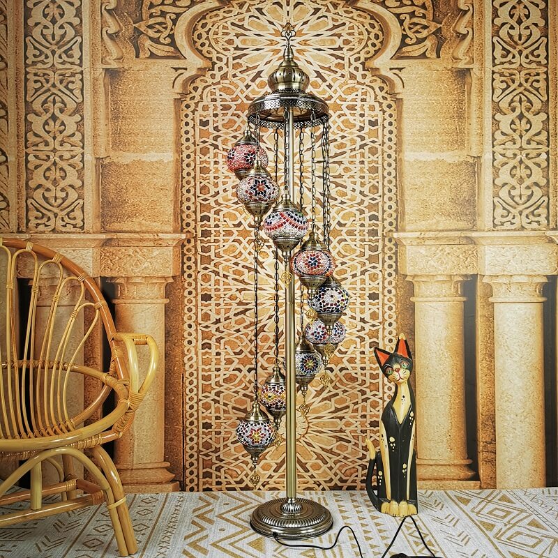 Retro Turkish Moroccan Globe 9-Light Standing Floor Lamp