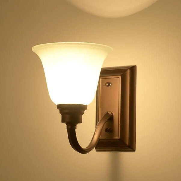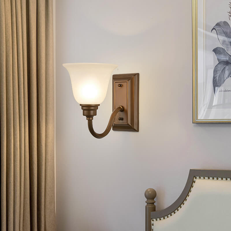 Rustic Vintage Iron Frame Floral Glass Shade 1-Light Wall Sconce Lamp