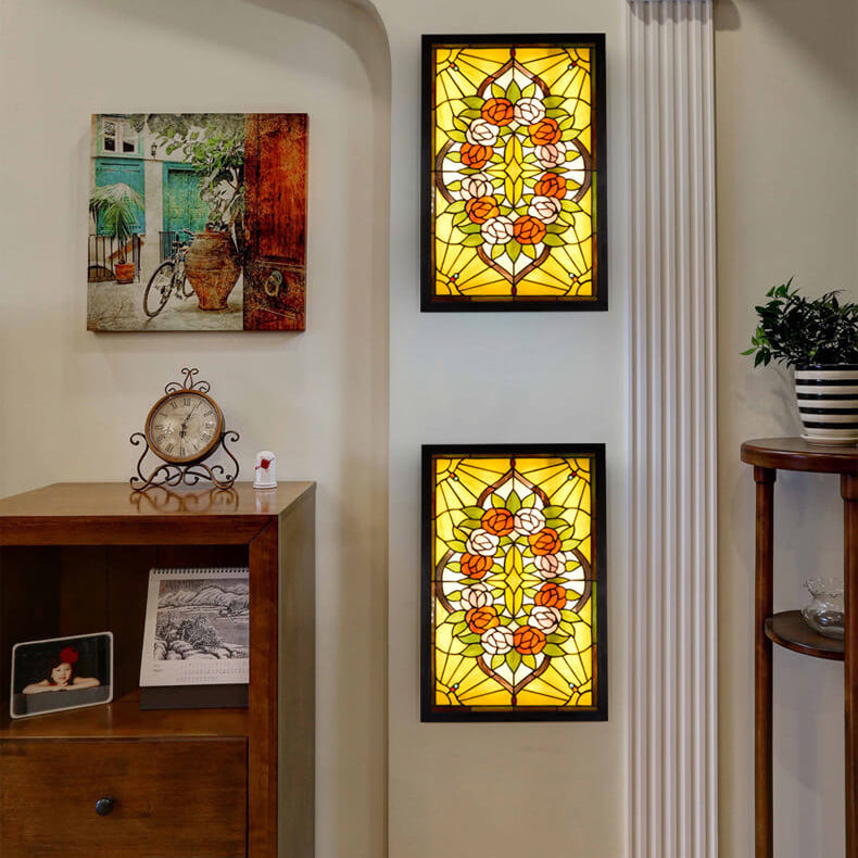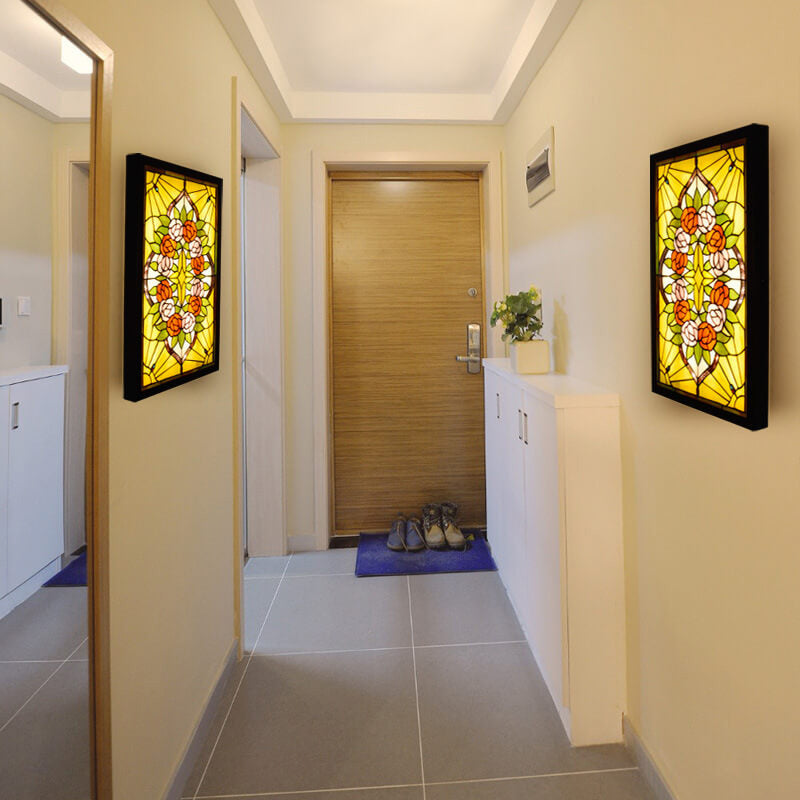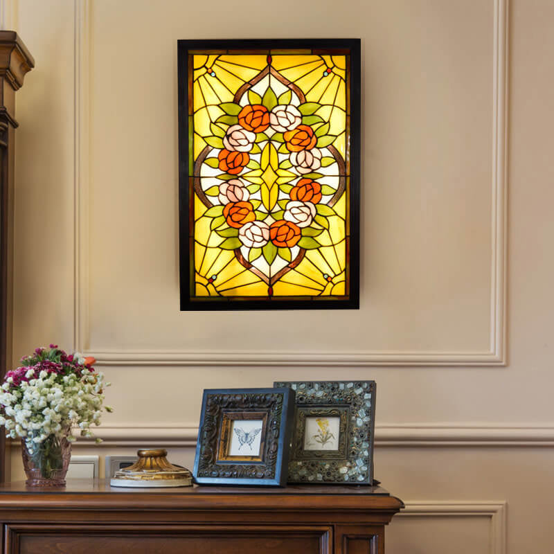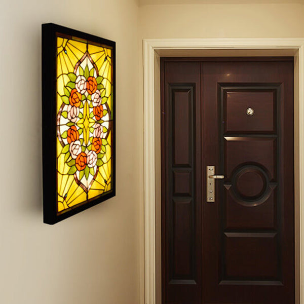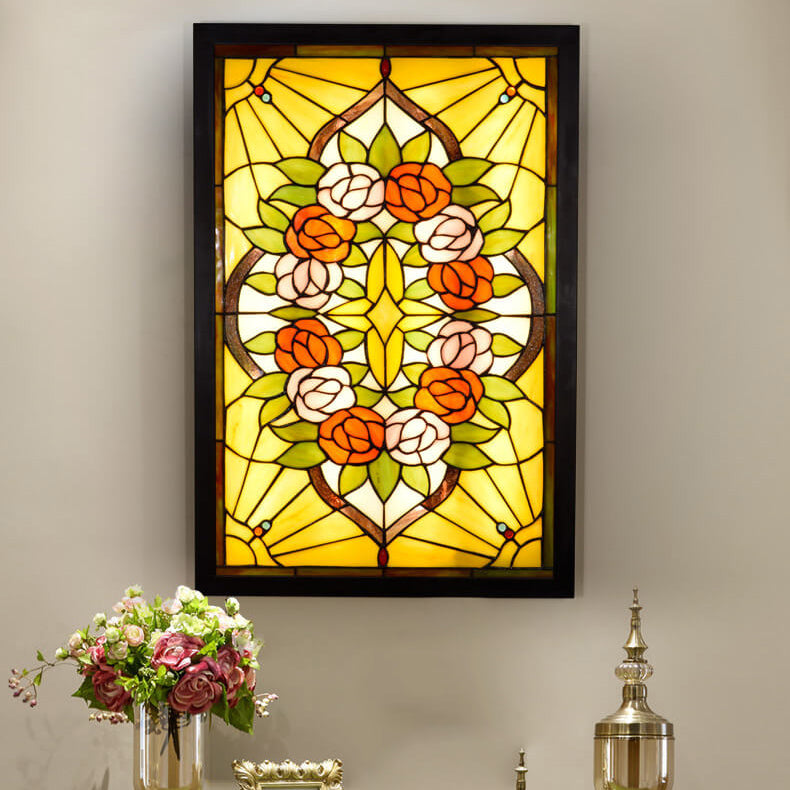 Tiffany Creative Pastoral Rose Pattern Mural Design LED Wall Sconce Lamp