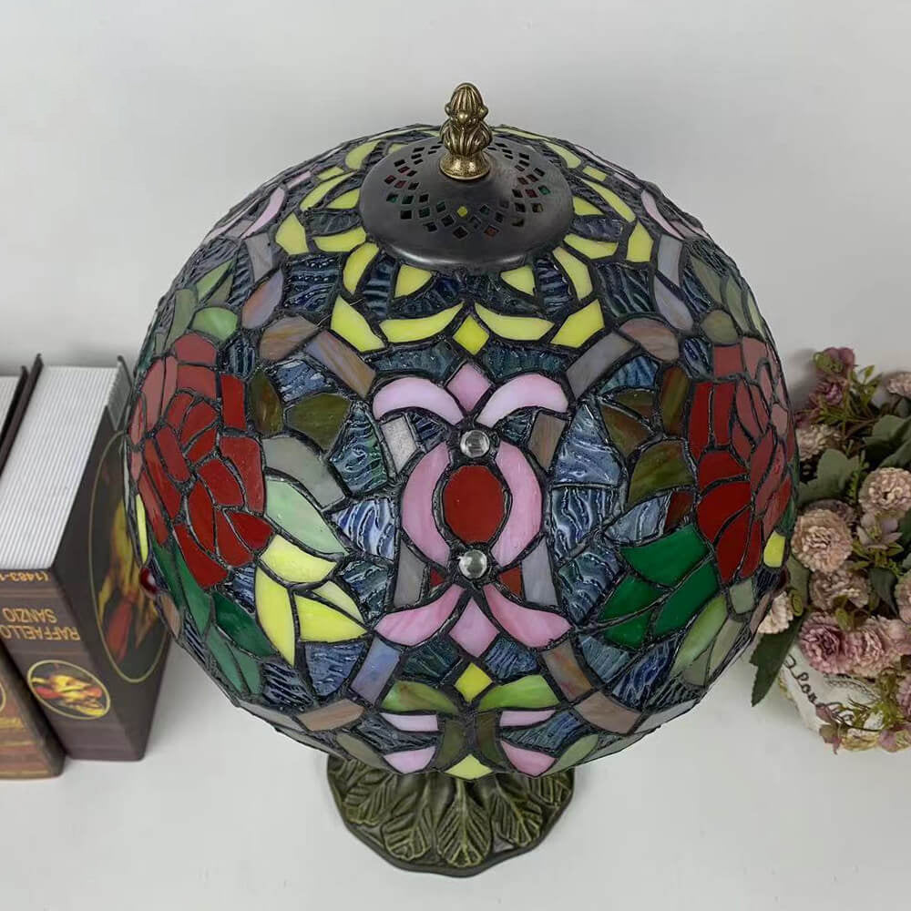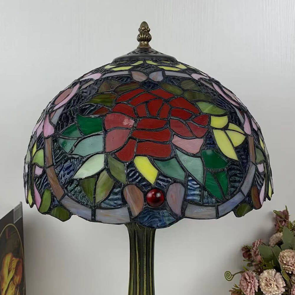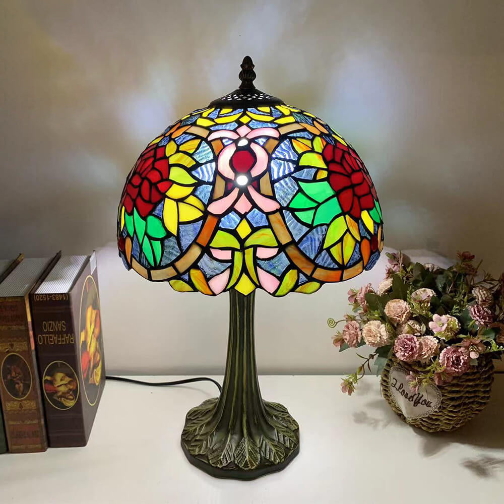 Tiffany Half Round Rose Hardware Stained Glass 1-Light Table Lamp