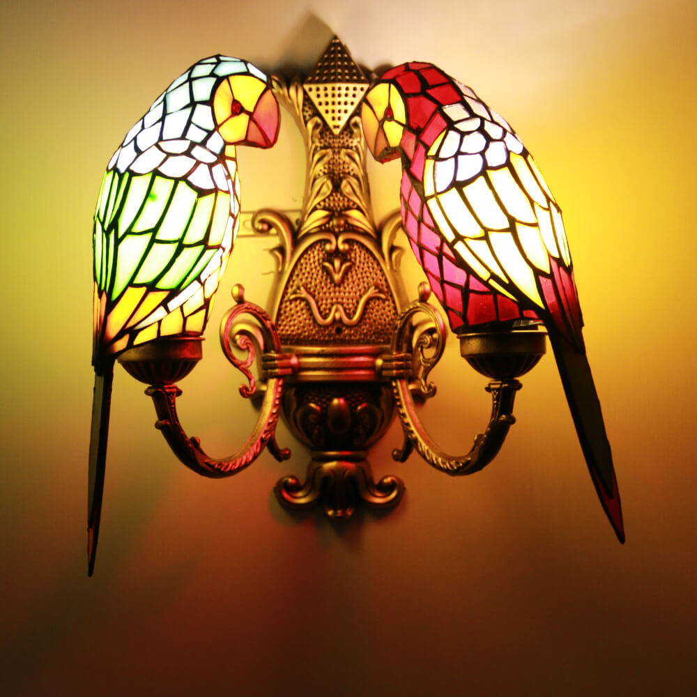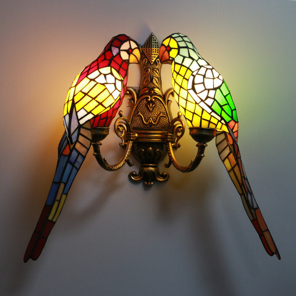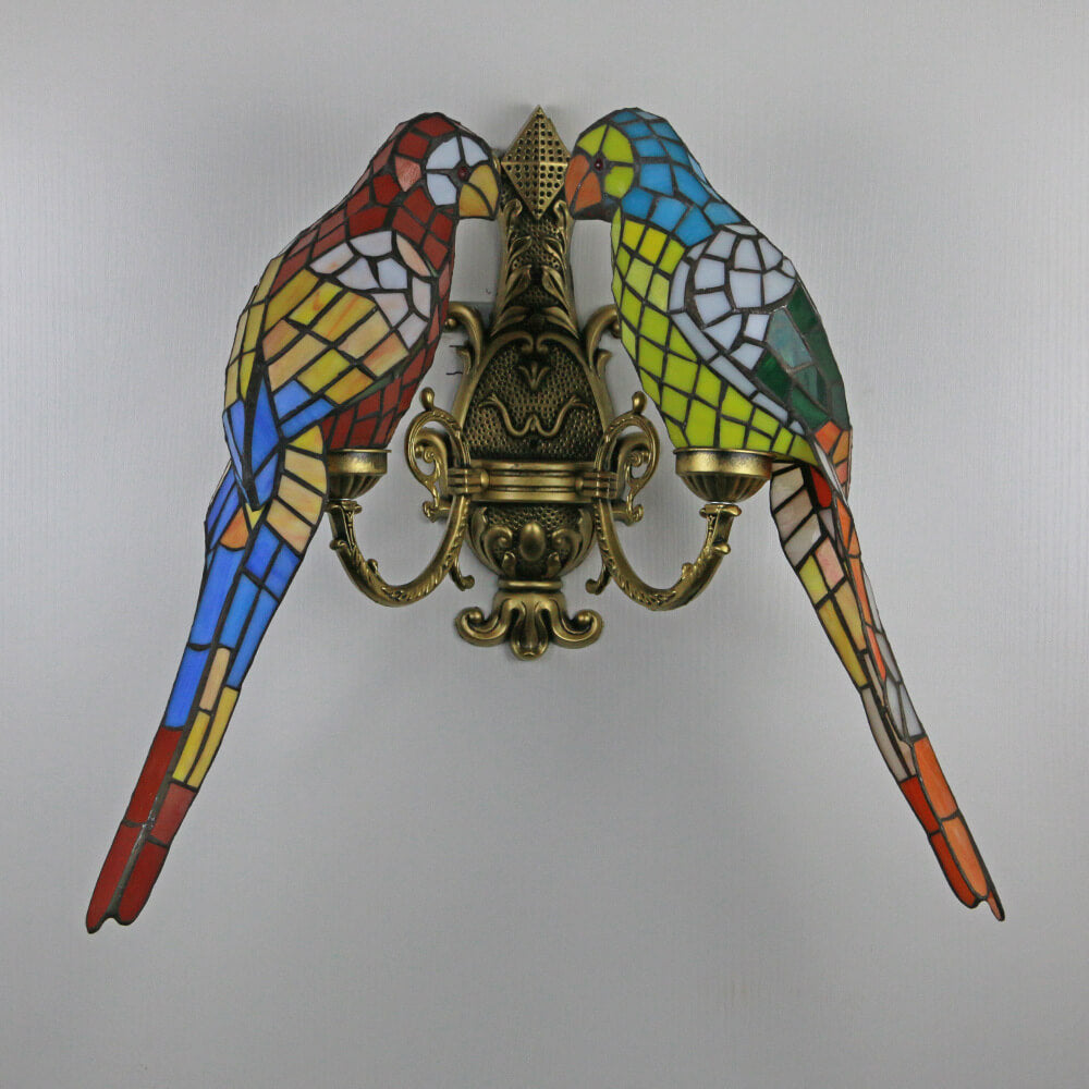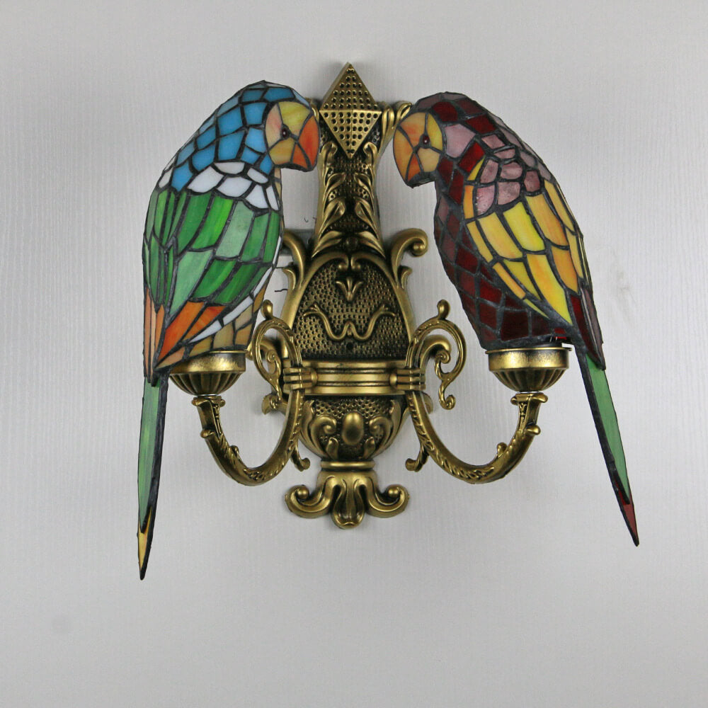 Tiffany Pastoral Double-Headed Parrot Stained Glass 2-Light Wall Sconce Lamp
