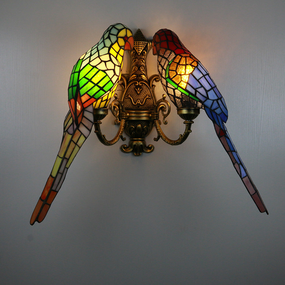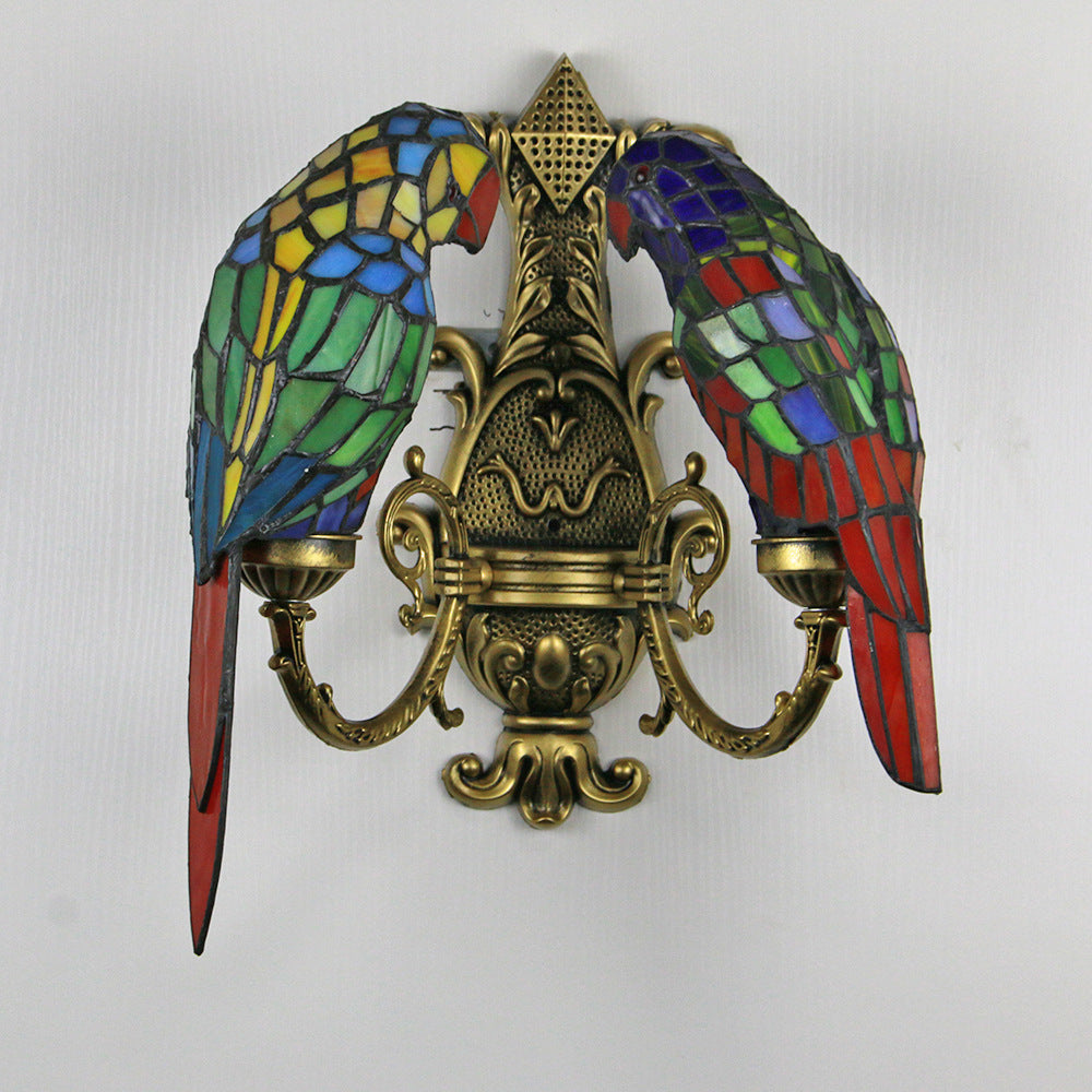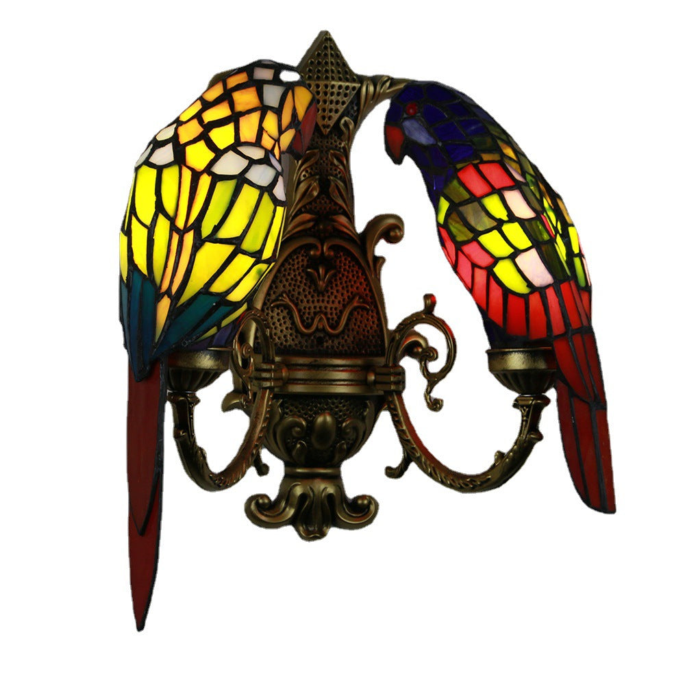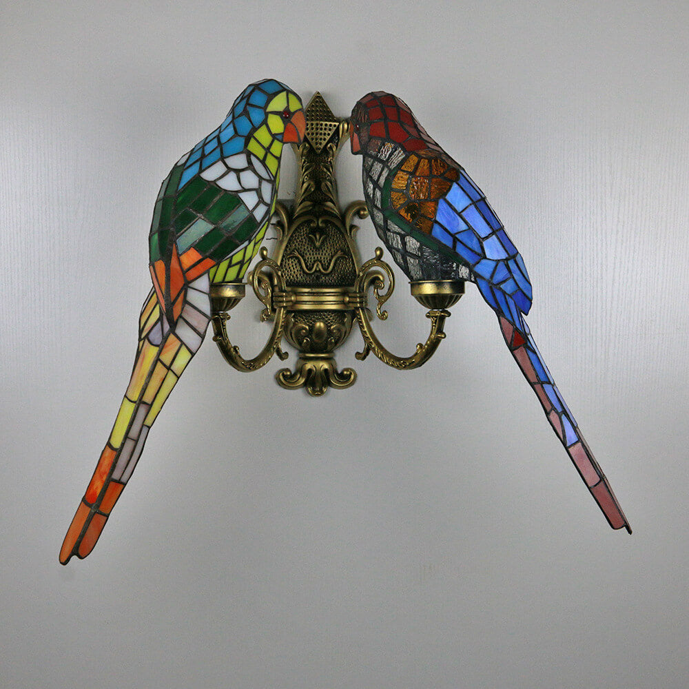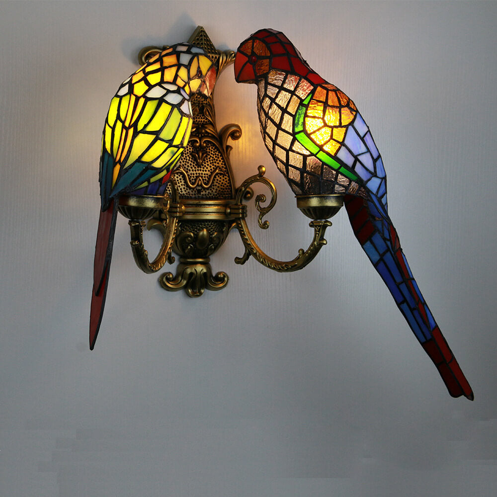 Tiffany Pastoral Double-Headed Parrot Stained Glass 2-Light Wall Sconce Lamp