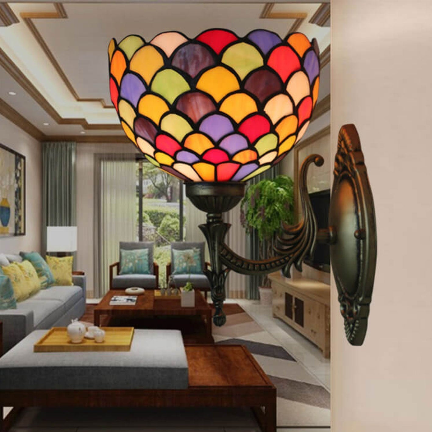 Tiffany Stained Dot Glass 1-Light Wall Sconce Lamp