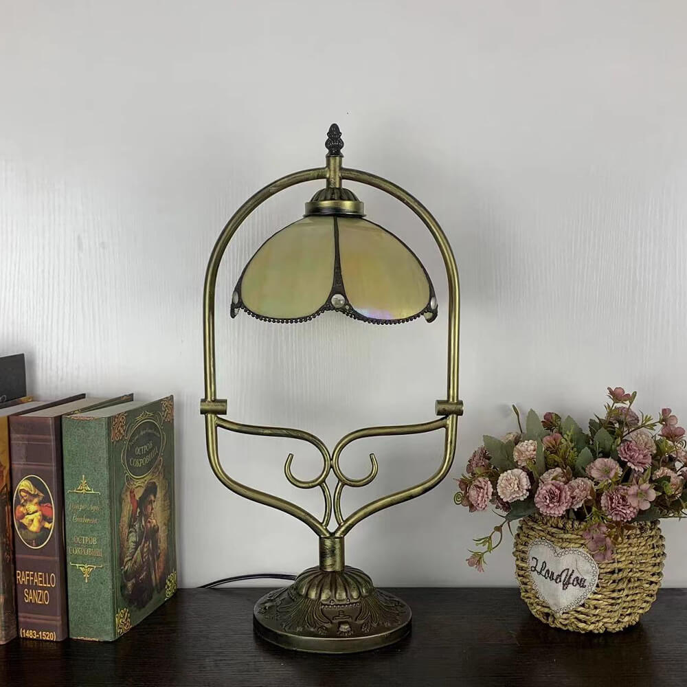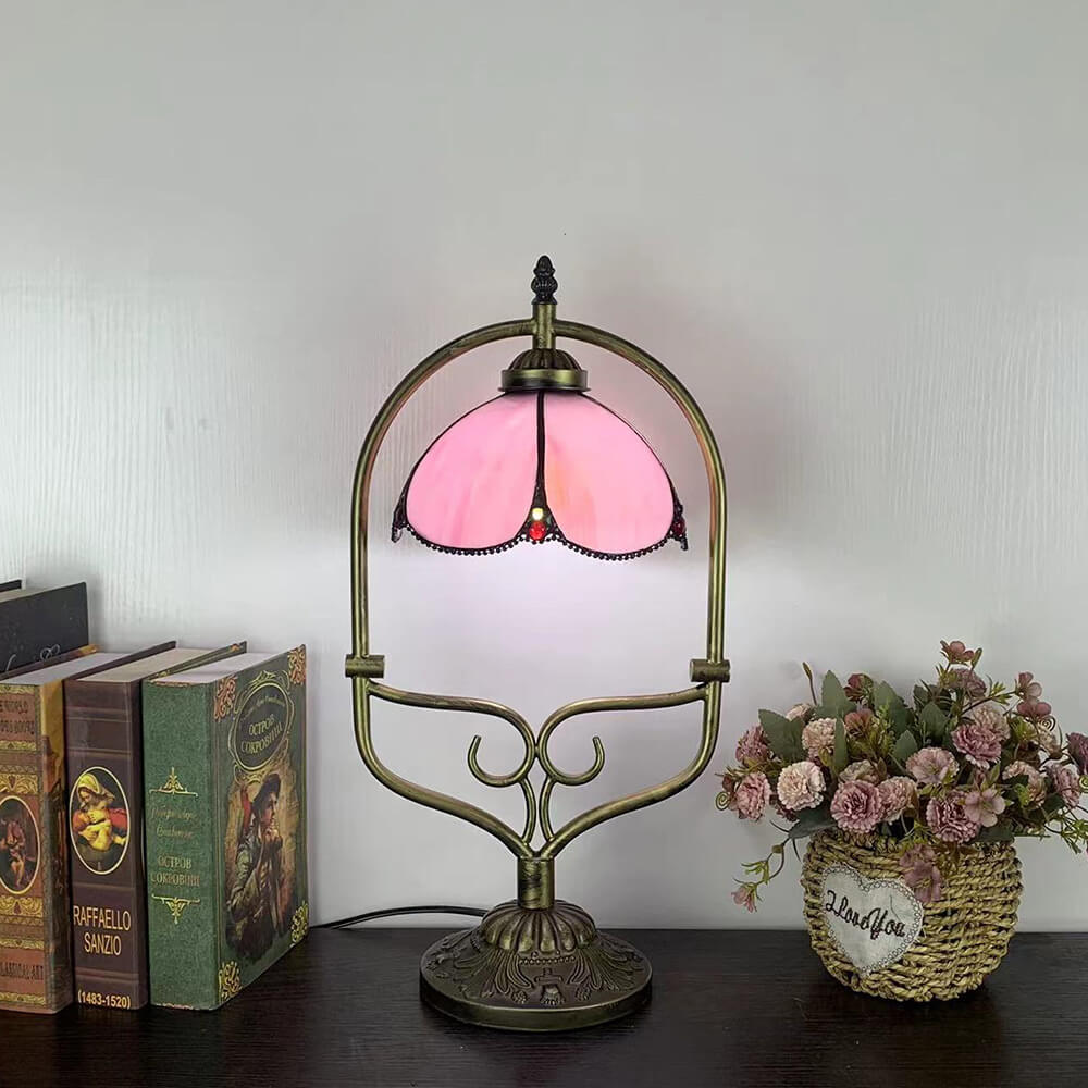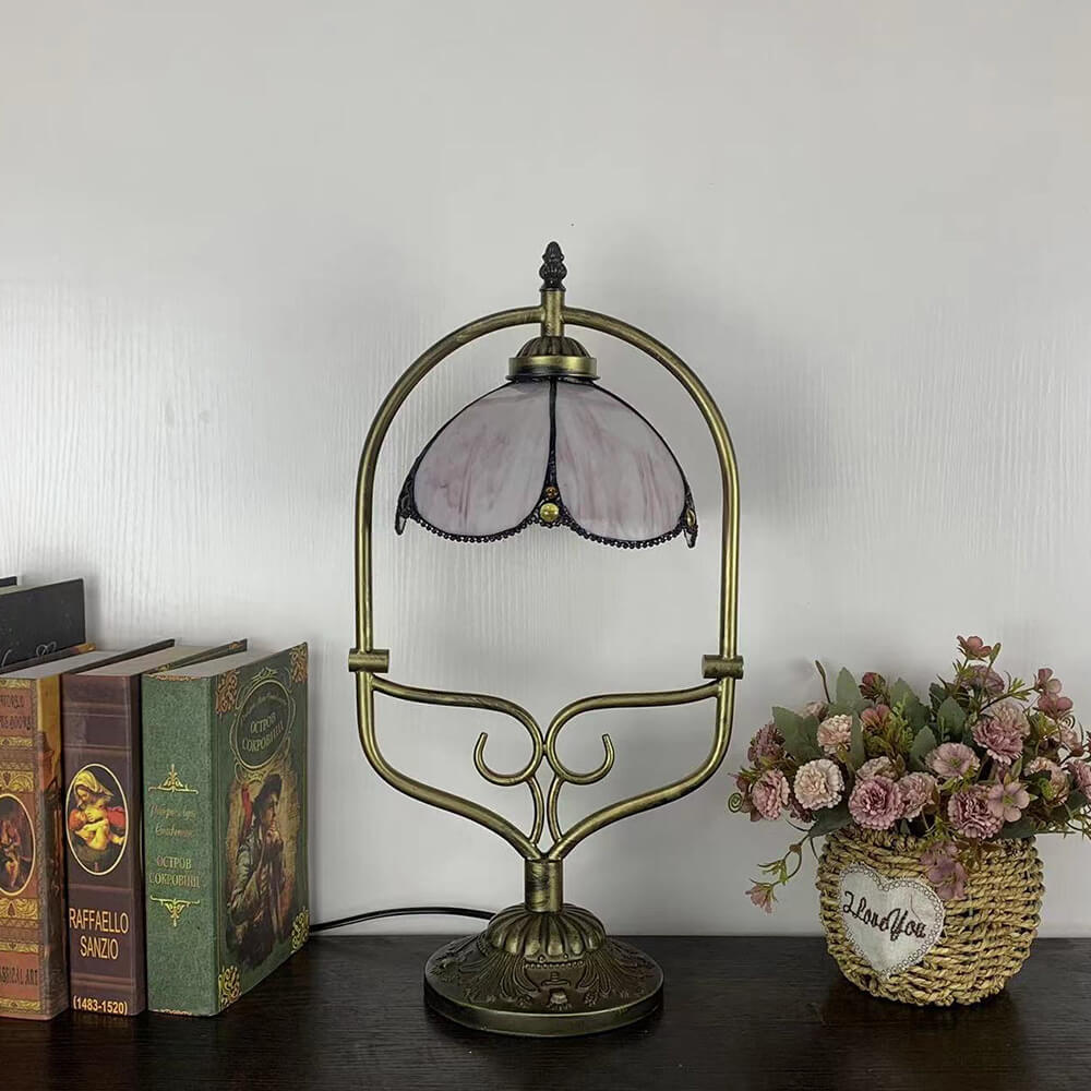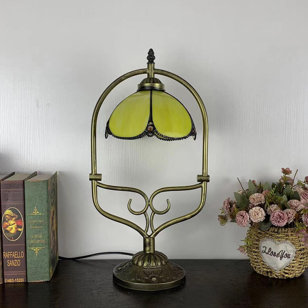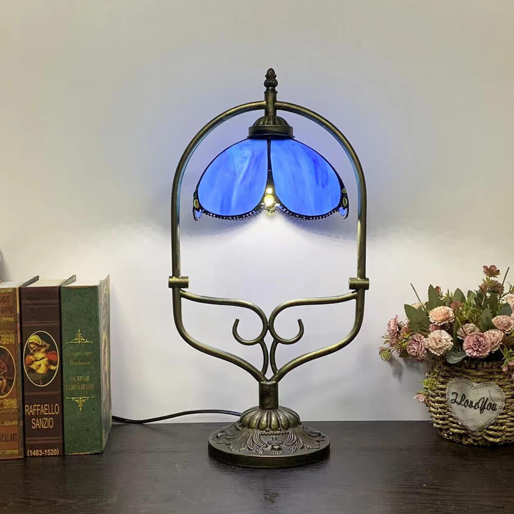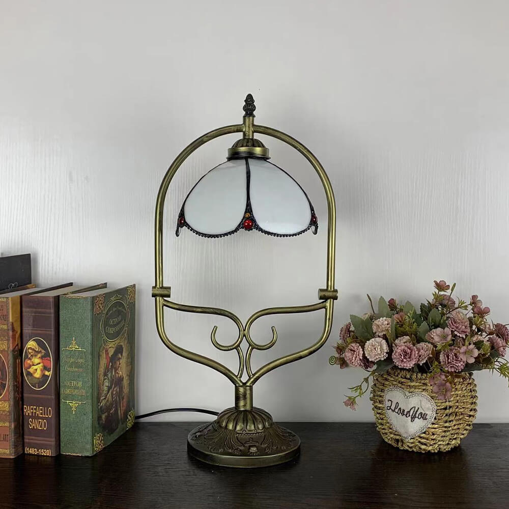 Tiffany Vintage Flower Stained Glass Shade Metal Base 1-Light Table Lamp