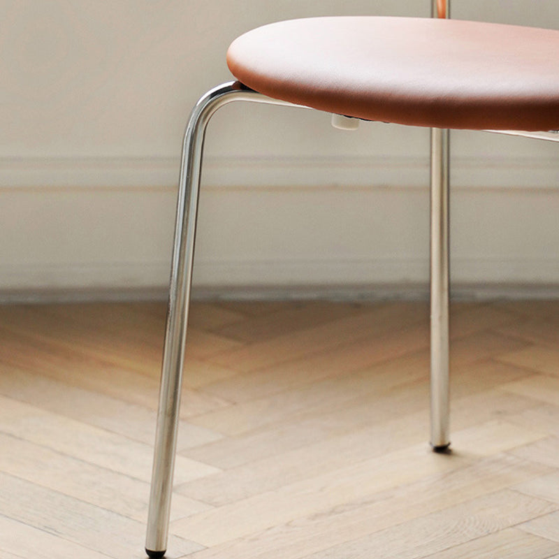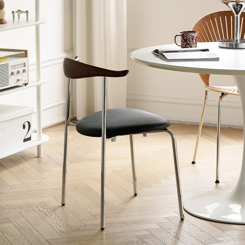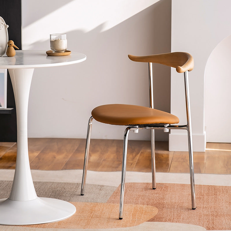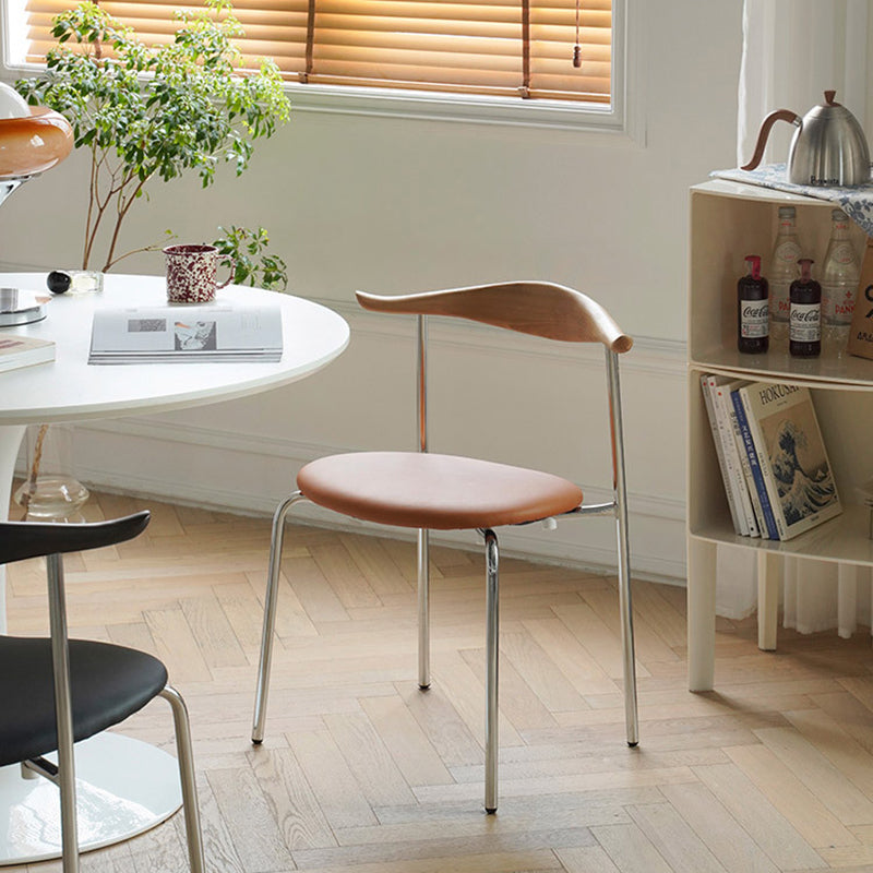 Traditional Chinese Cowl Oval Leather Metal Dining Chair Backrest Armless For Dining Room
