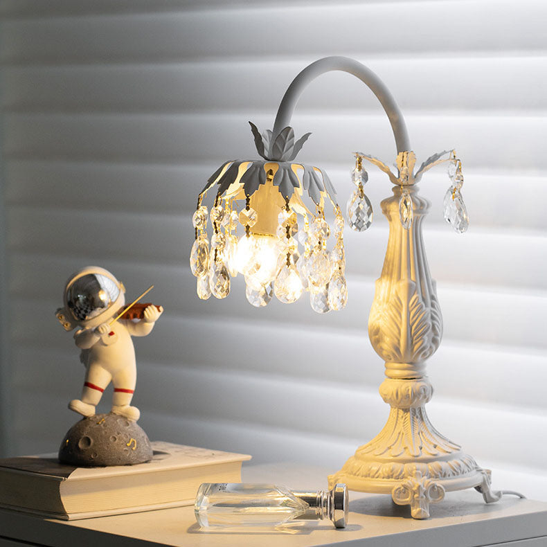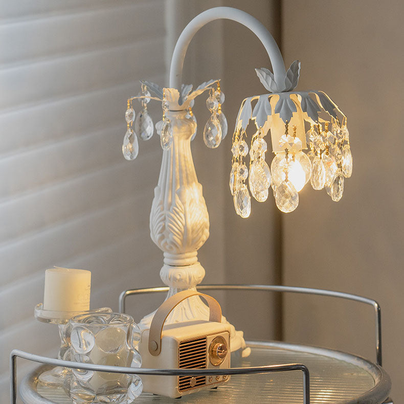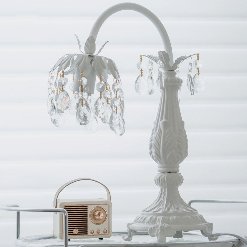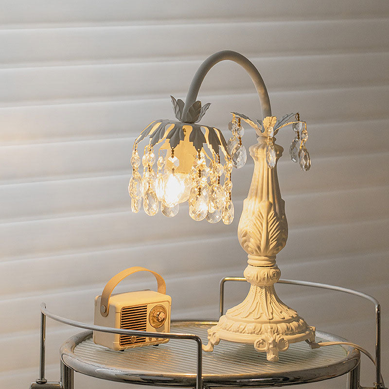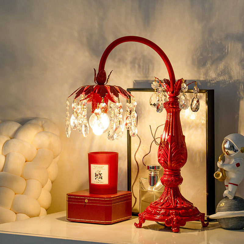 Traditional Chinese Crystal Beaded Iron Carved Base 1-Light Table Lamp For Bedroom