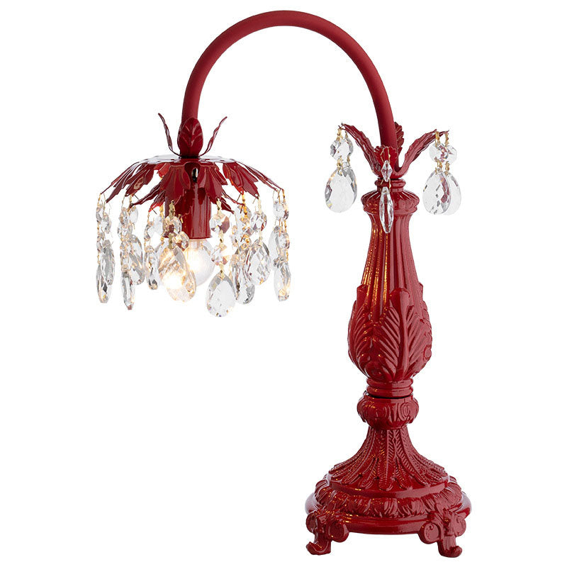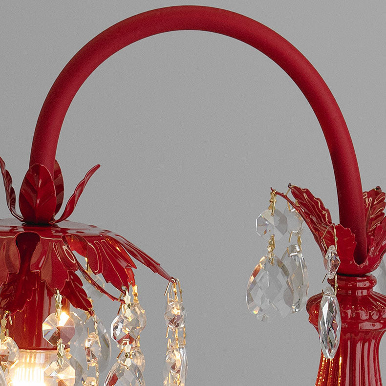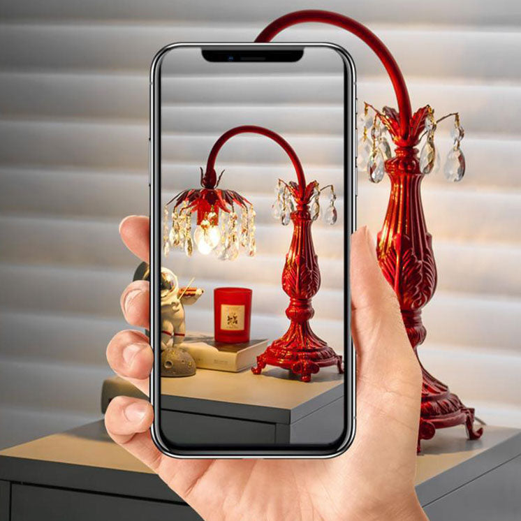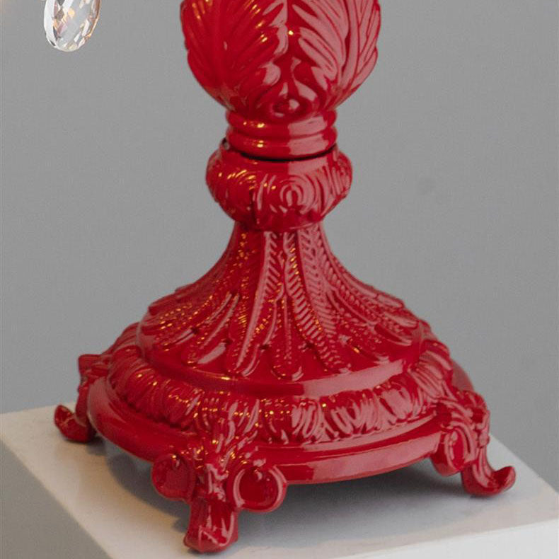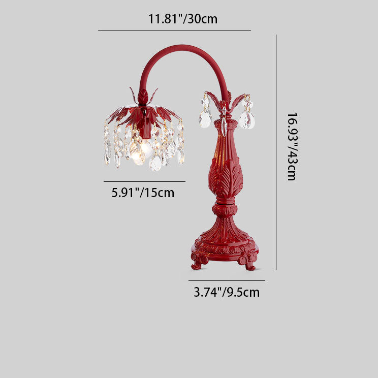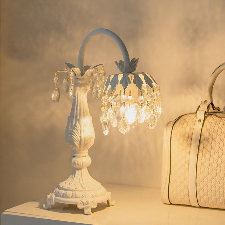 Traditional Chinese Crystal Beaded Iron Carved Base 1-Light Table Lamp For Bedroom