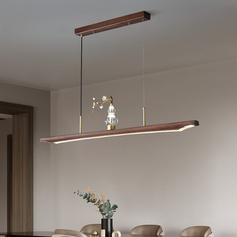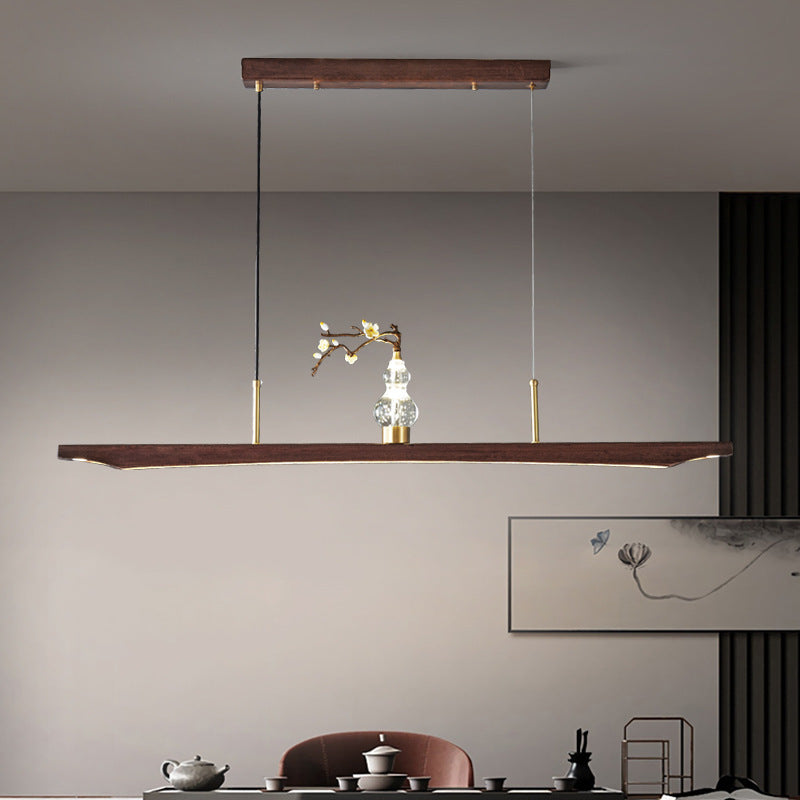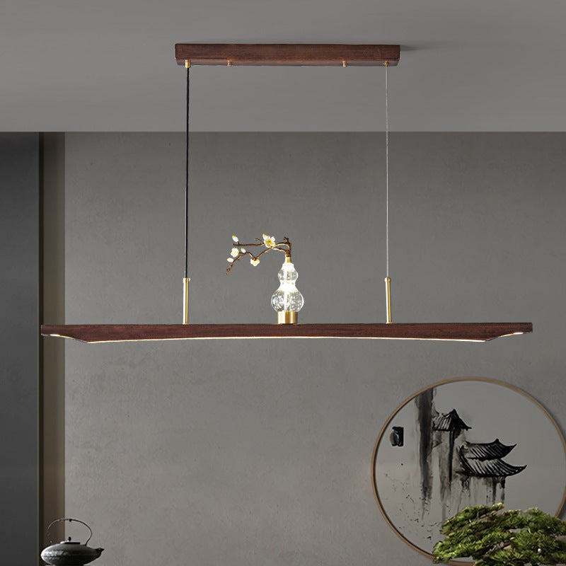 Traditional Chinese Crystal Gourd Ebony Copper LED Chandeliers Island Light For Dining Room
