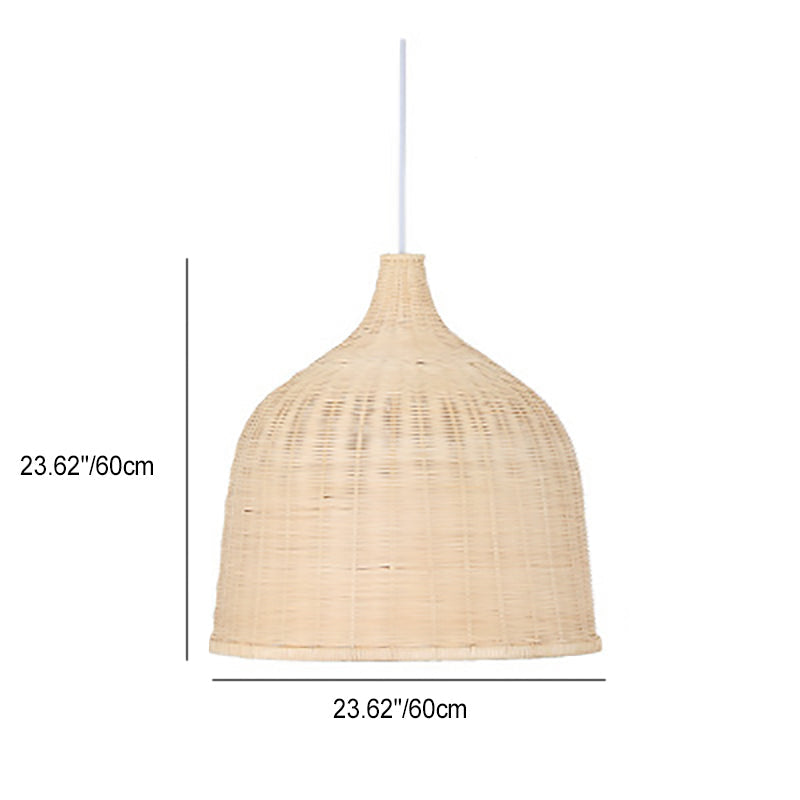 Traditional Chinese Cylinder Round Bamboo 1-Light Pendant Light For Living Room