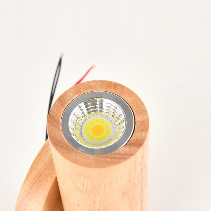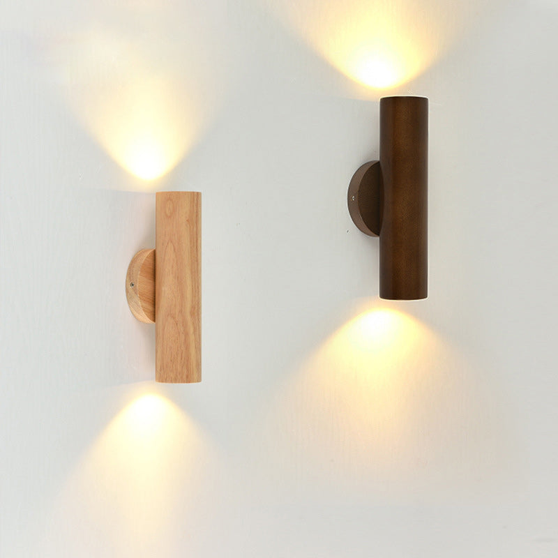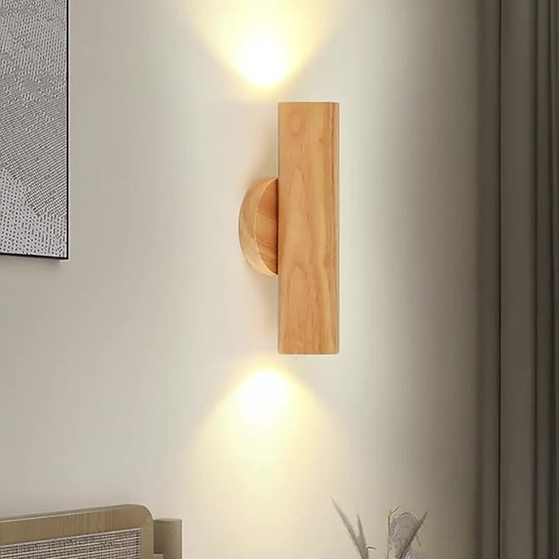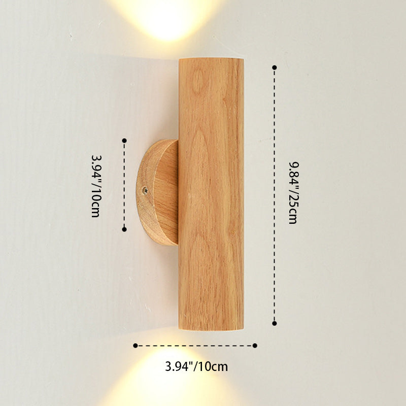 Traditional Chinese Cylinder Rubberwood LED Wall Sconce Lamp For Bedroom