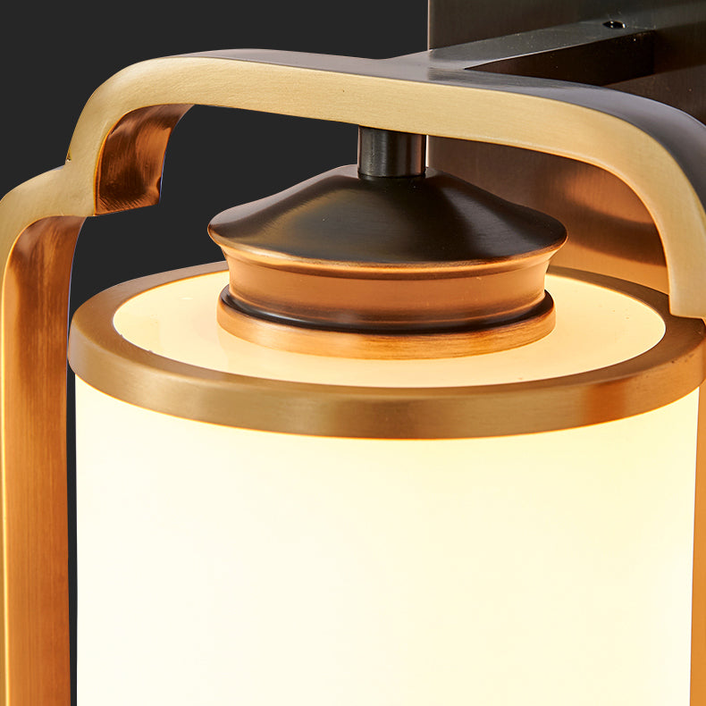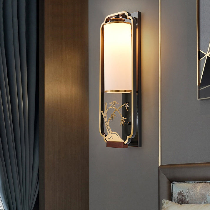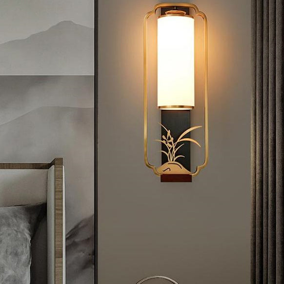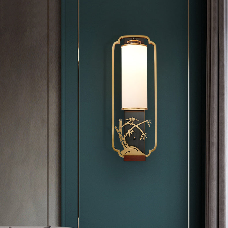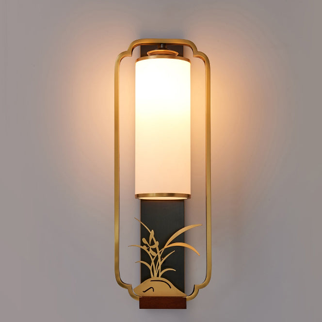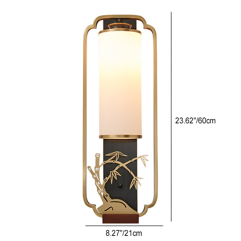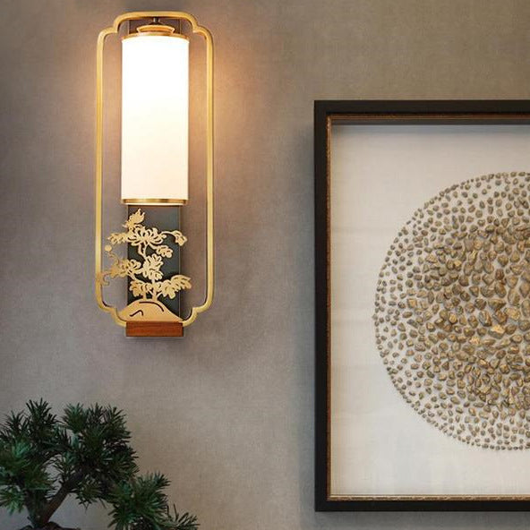 Traditional Chinese Cylinder Square Flower Deer Glass Iron 1-Light Wall Sconce Lamp For Living Room
