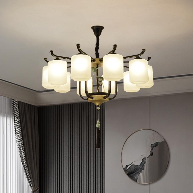 Traditional Chinese Iron Frame Cylinder Glass Shade 6/8/10/12-Light Chandelier For Living Room
