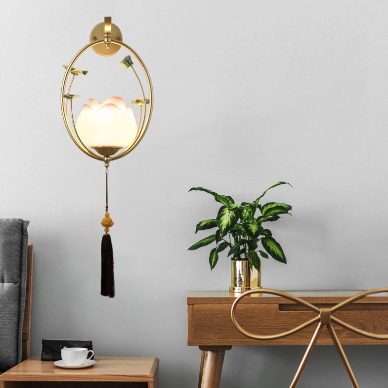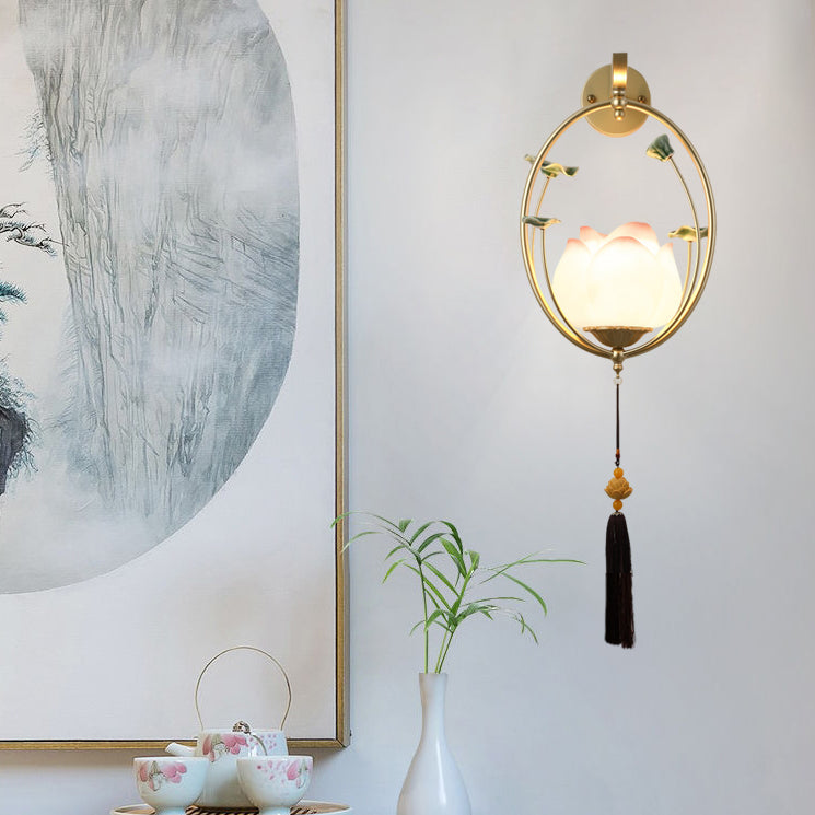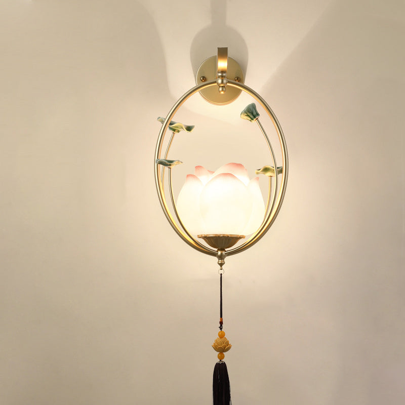 Traditional Chinese Round Lotus Resin Ceramics Iron 1 - Light Wall Sconce Lamp For Bedroom