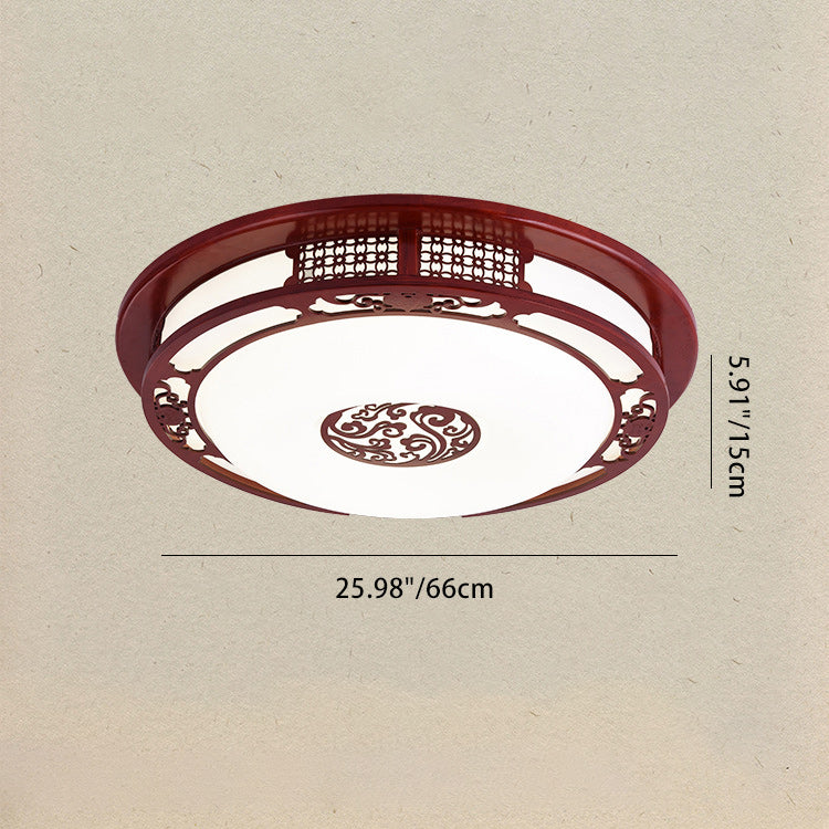 Traditional Chinese Round Oak PVC LED Flush Mount Ceiling Light For Living Room