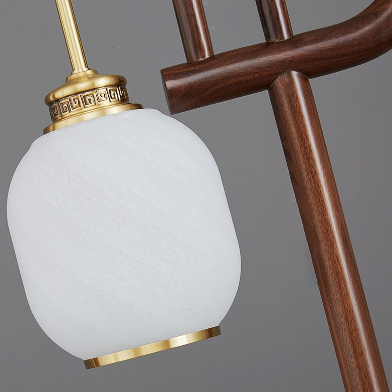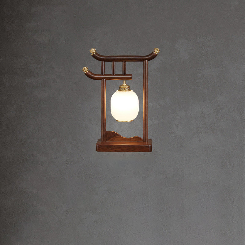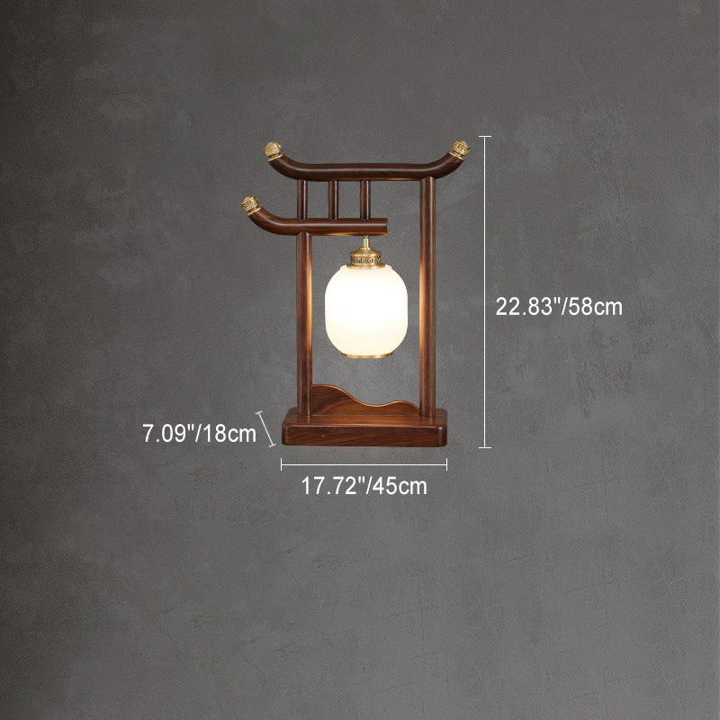 Traditional Chinese Solid Wood Frame Glass Round Shade 1-Light Table Lamp For Home Office
