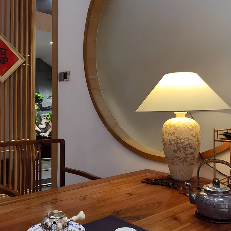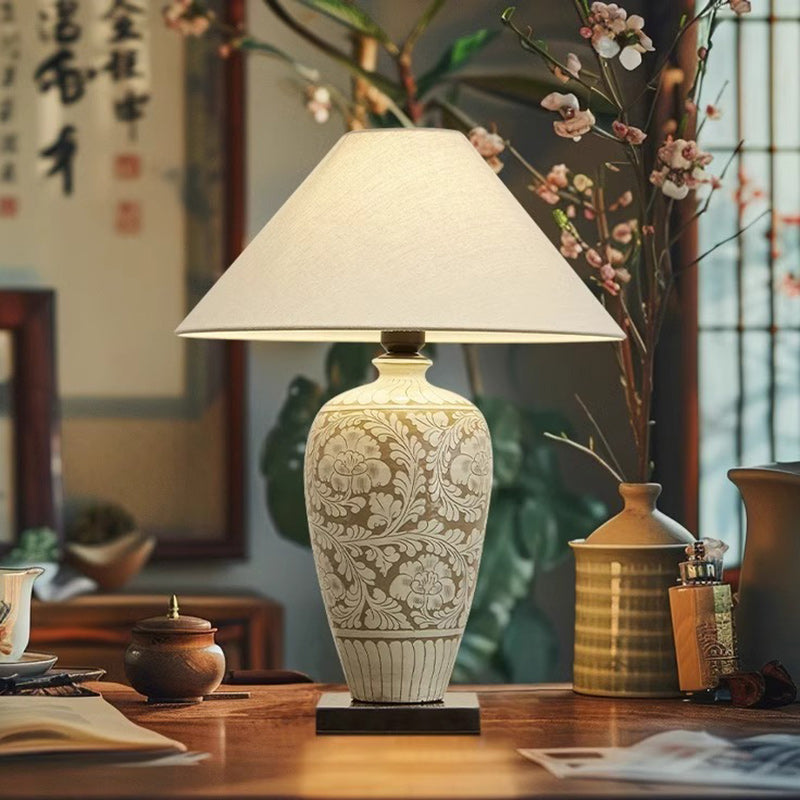 Traditional Chinese Vase Ceramic Fabric 1-Light Table Lamp For Bedroom