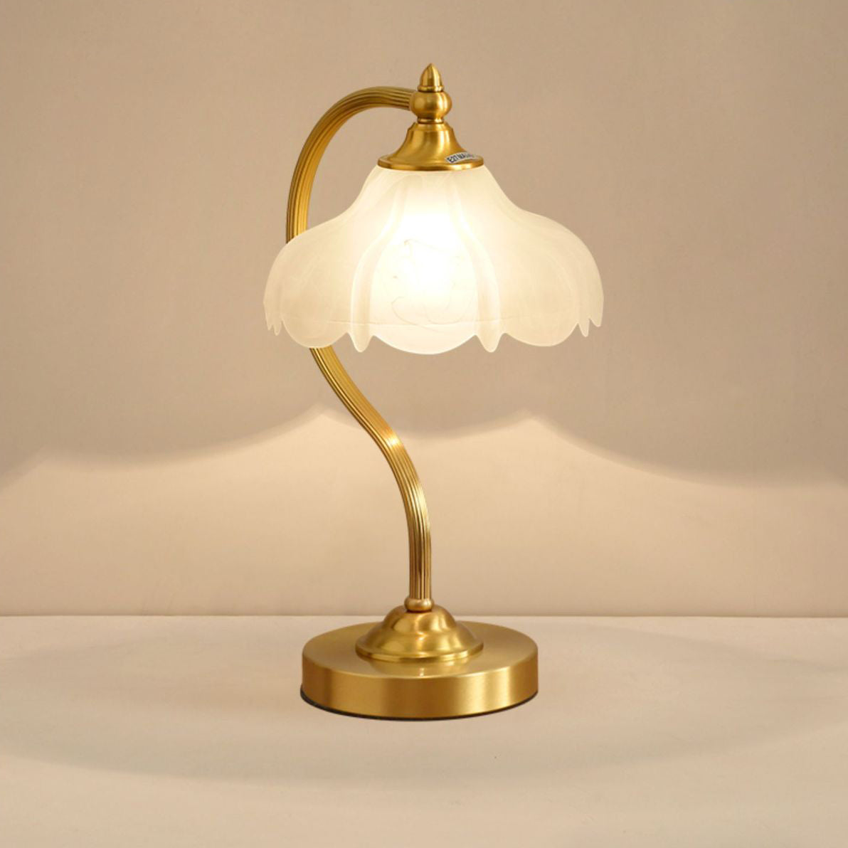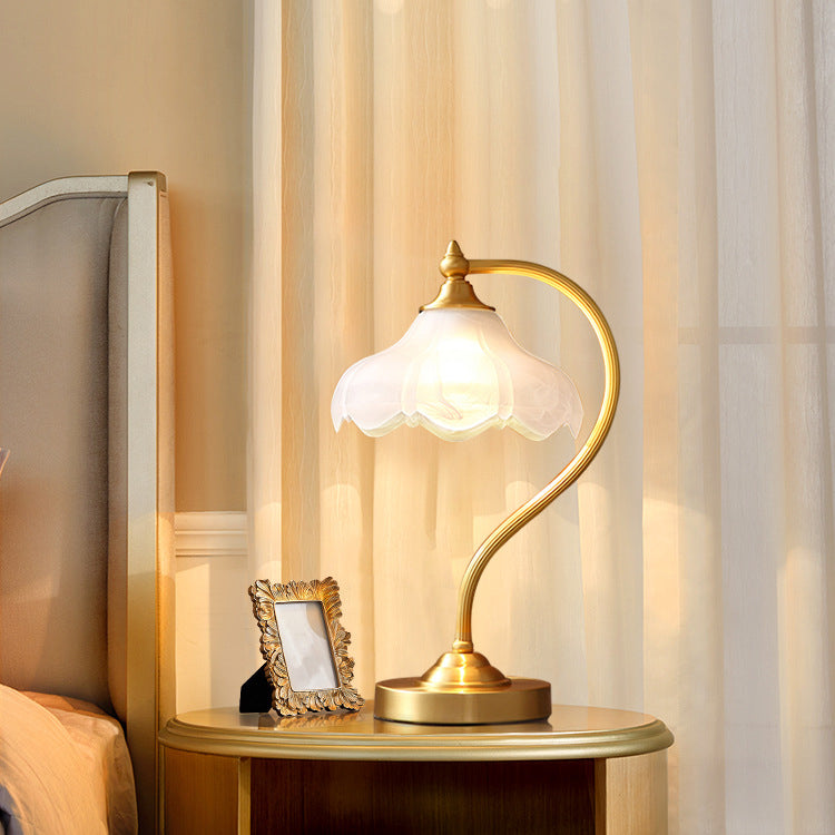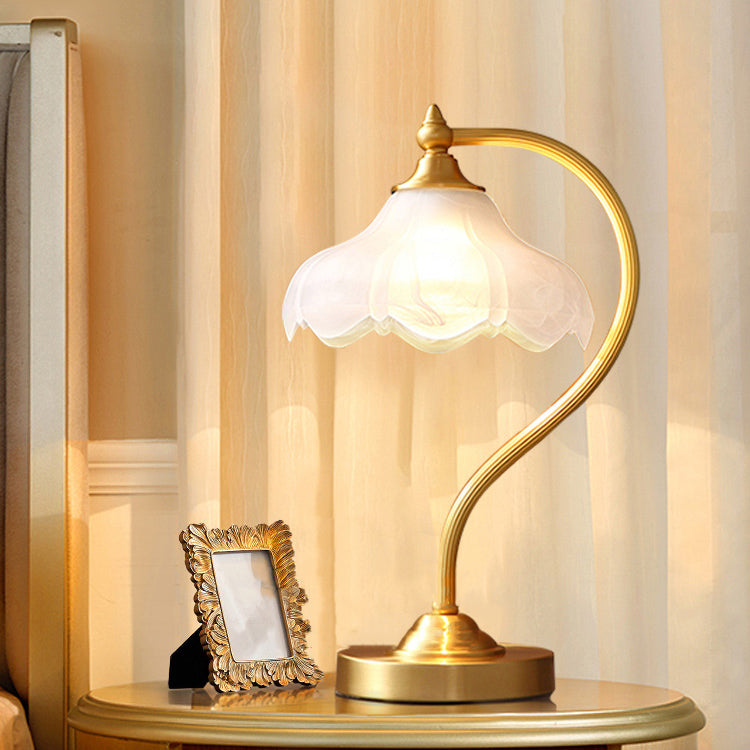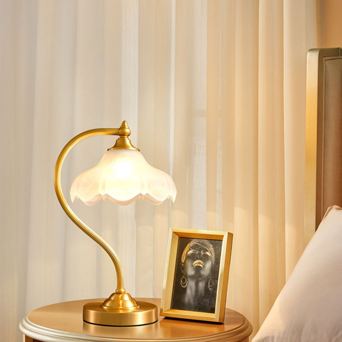 Traditional European Floral Round Copper Glass 1-Light Table Lamp For Bedroom