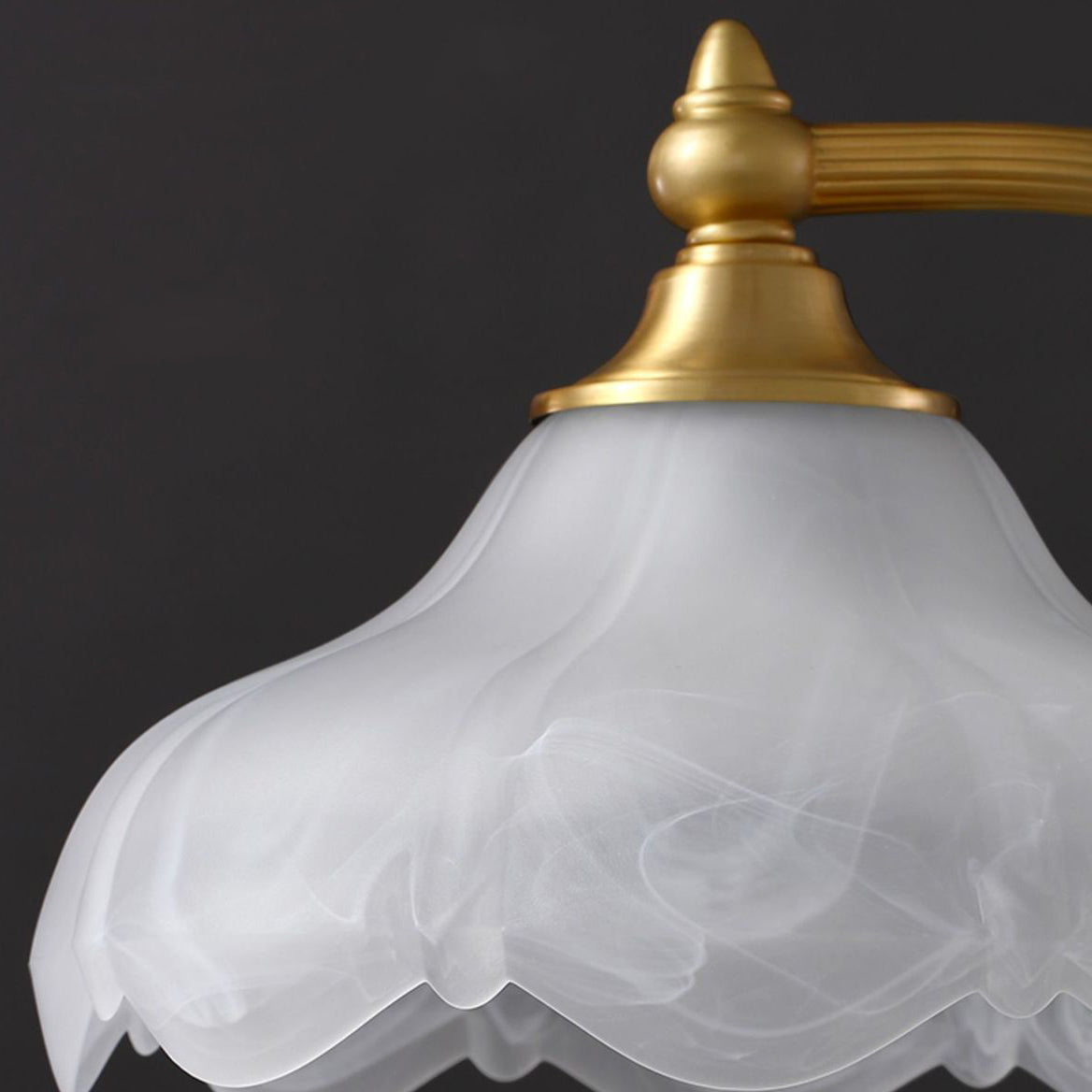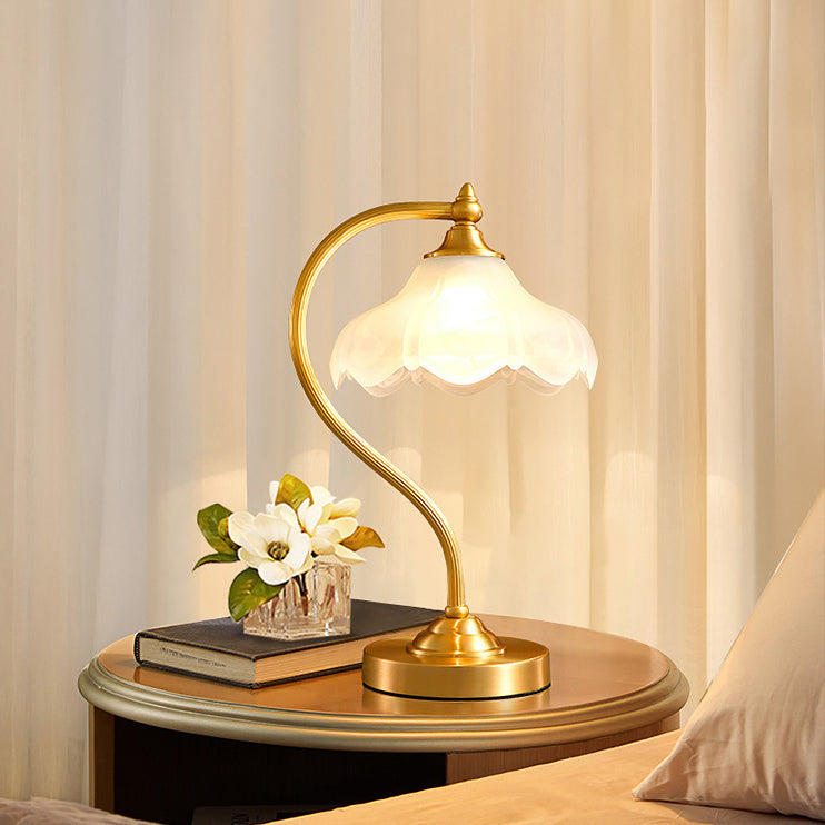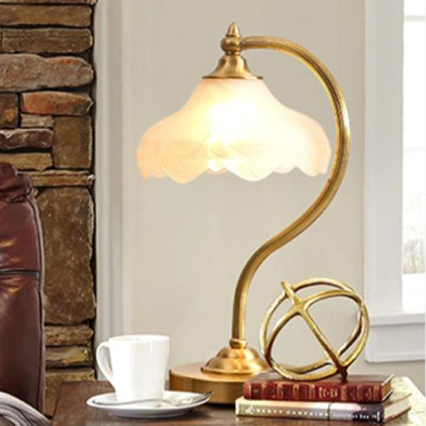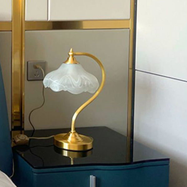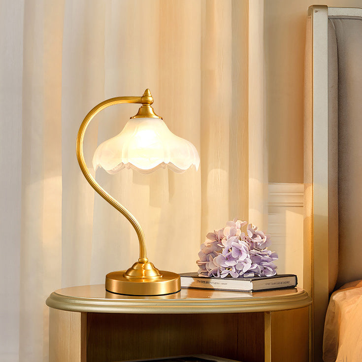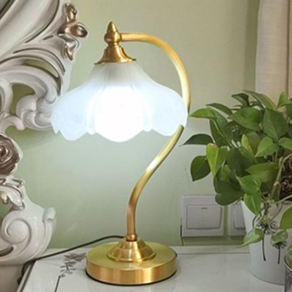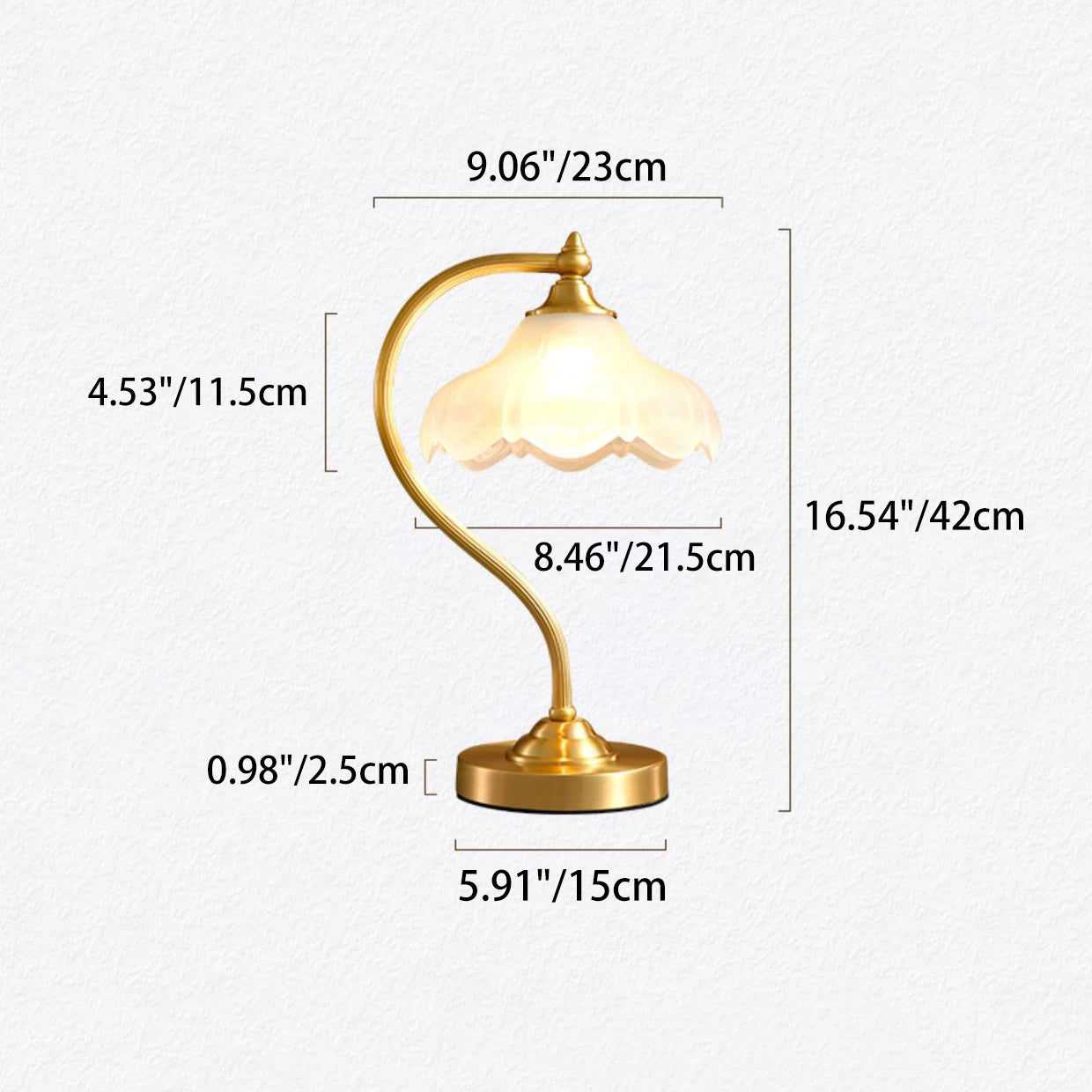 Traditional European Floral Round Copper Glass 1-Light Table Lamp For Bedroom