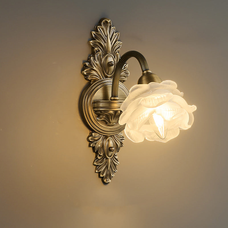 Traditional European Flower Copper Glass 1-Light Wall Sconce Lamp For Living Room