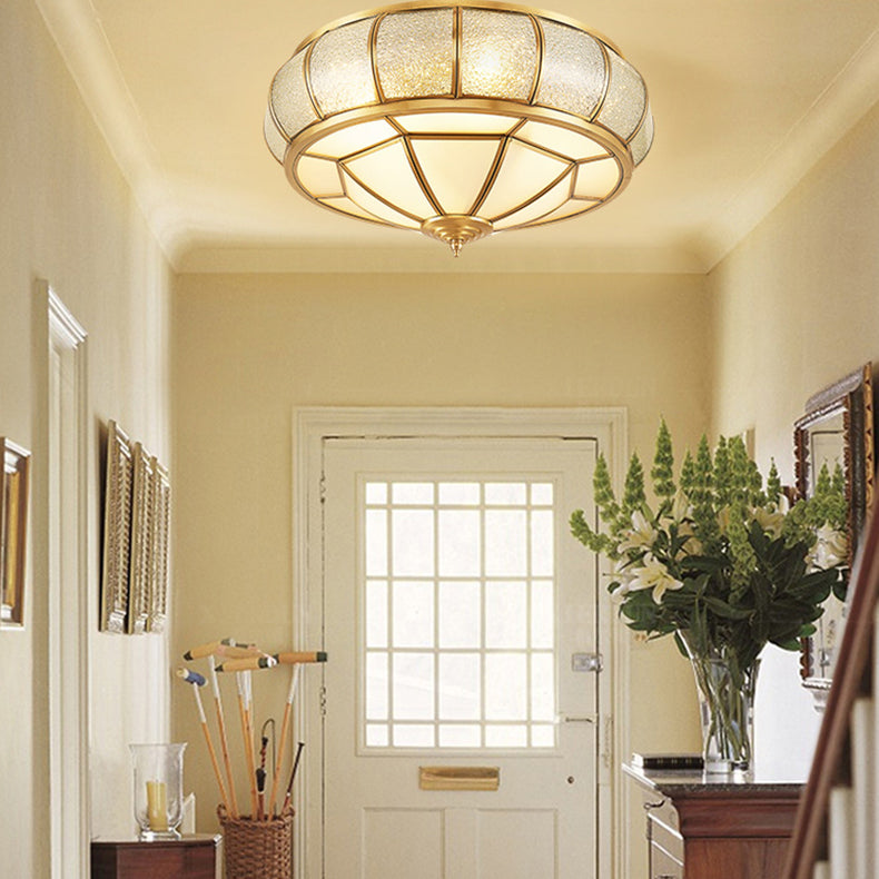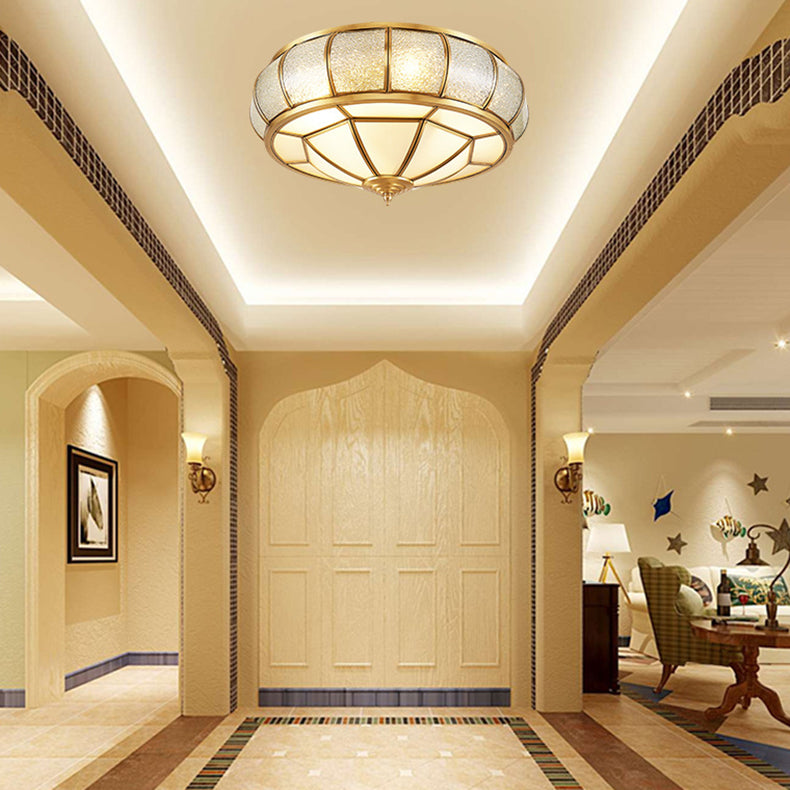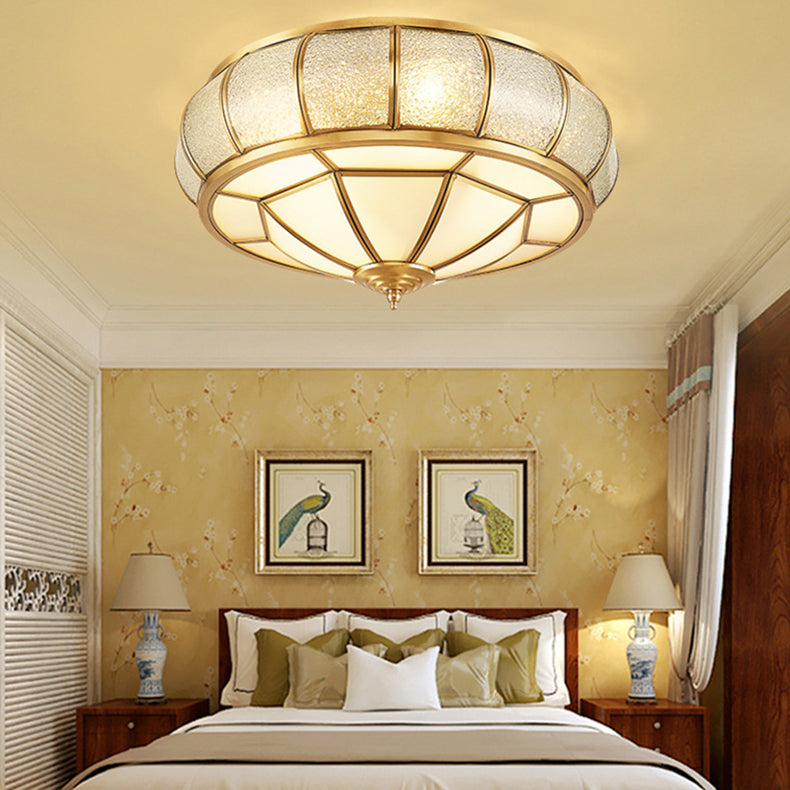 Traditional European Flying Saucer Shaped Half Round Globe Copper Glass 3/4/6 Light Flush Mount Ceiling Light For Living Room