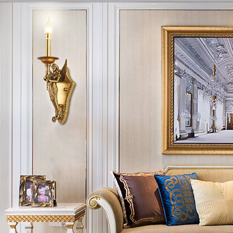 Traditional European Full Copper Mermaid Candle 1-Light Wall Sconce Lamp For Living Room & Bedroom