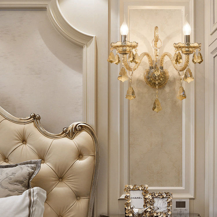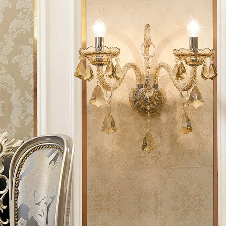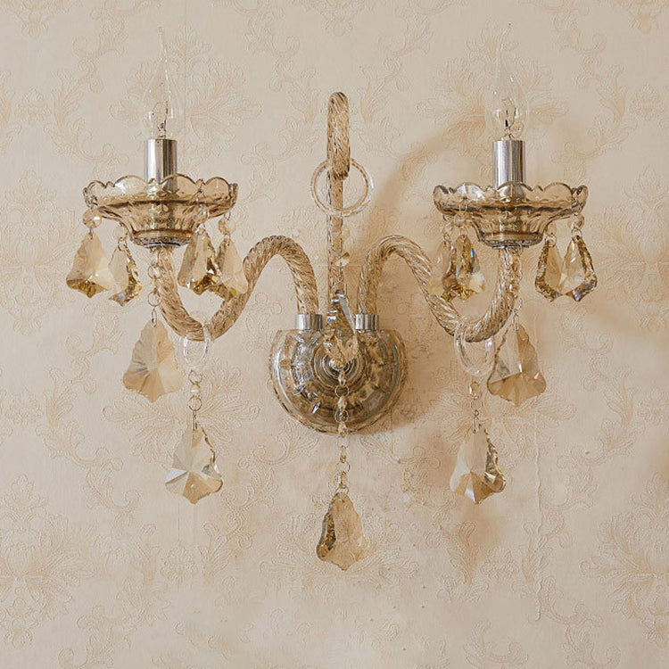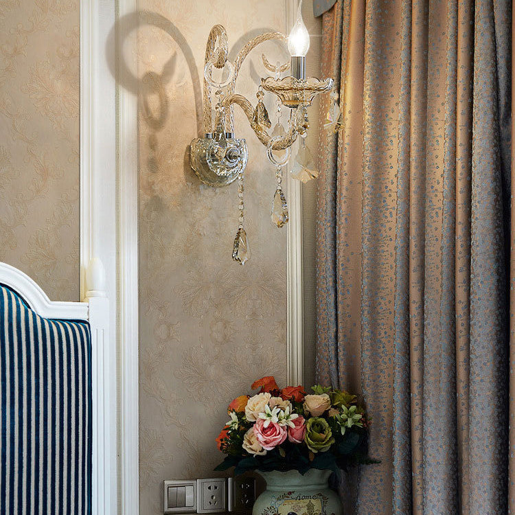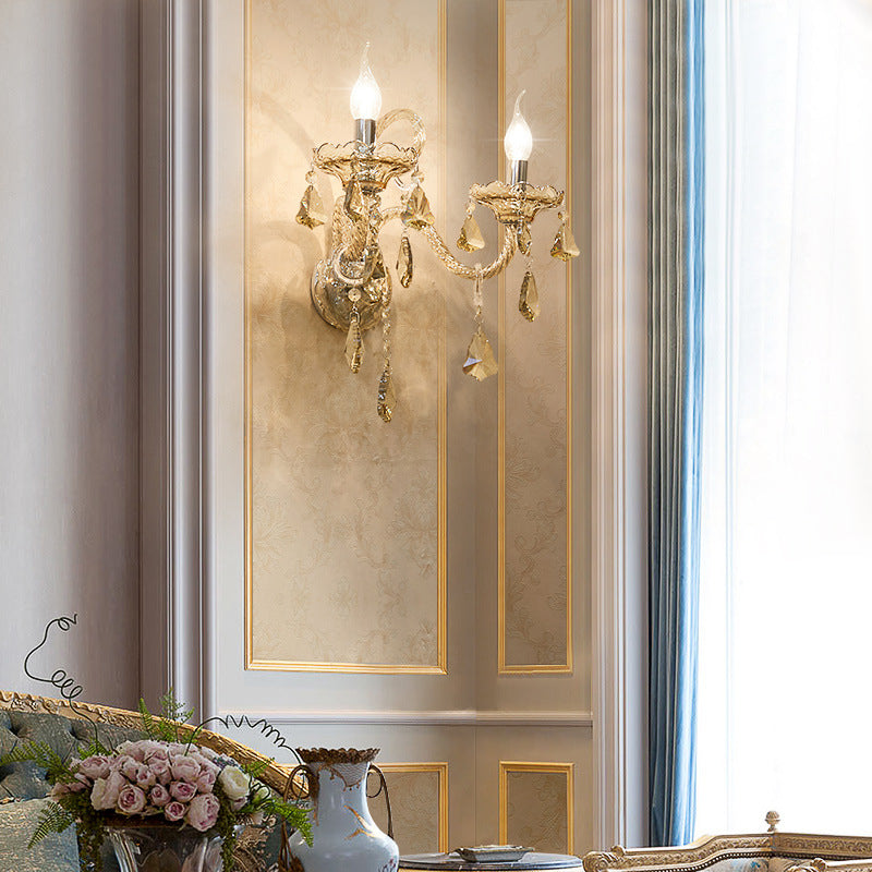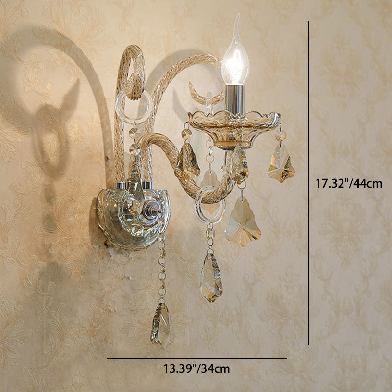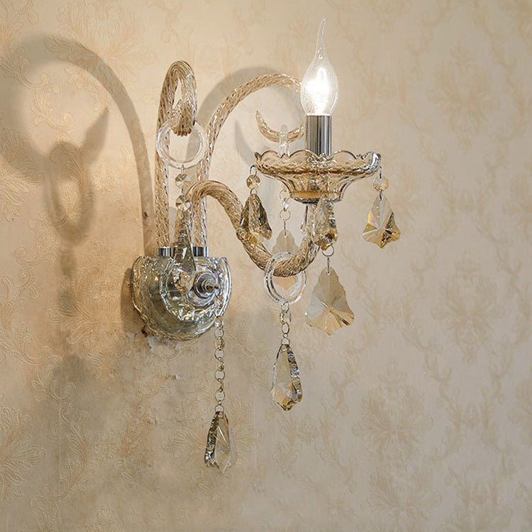 Traditional European Glass Crystal Candelabra Hardware 1/2-Light Wall Sconce Lamp For Living Room