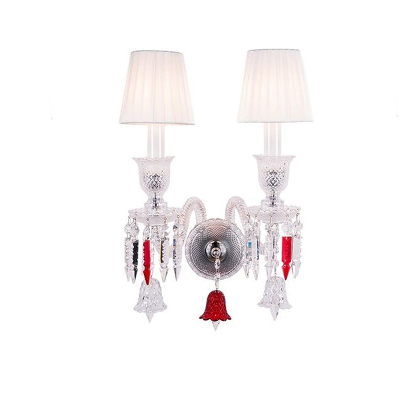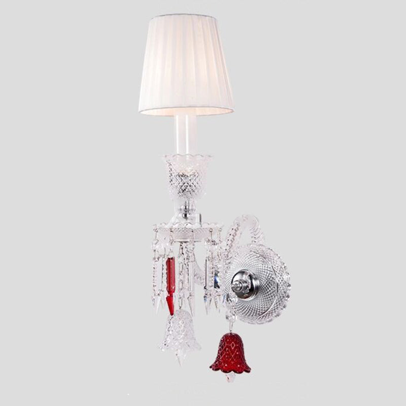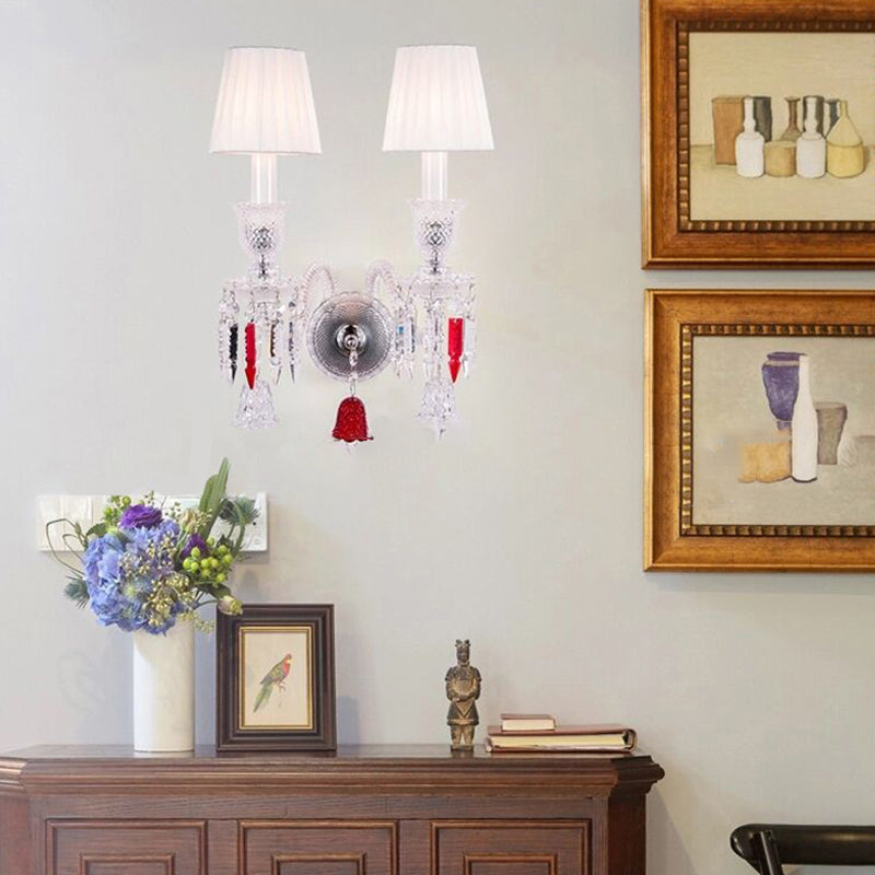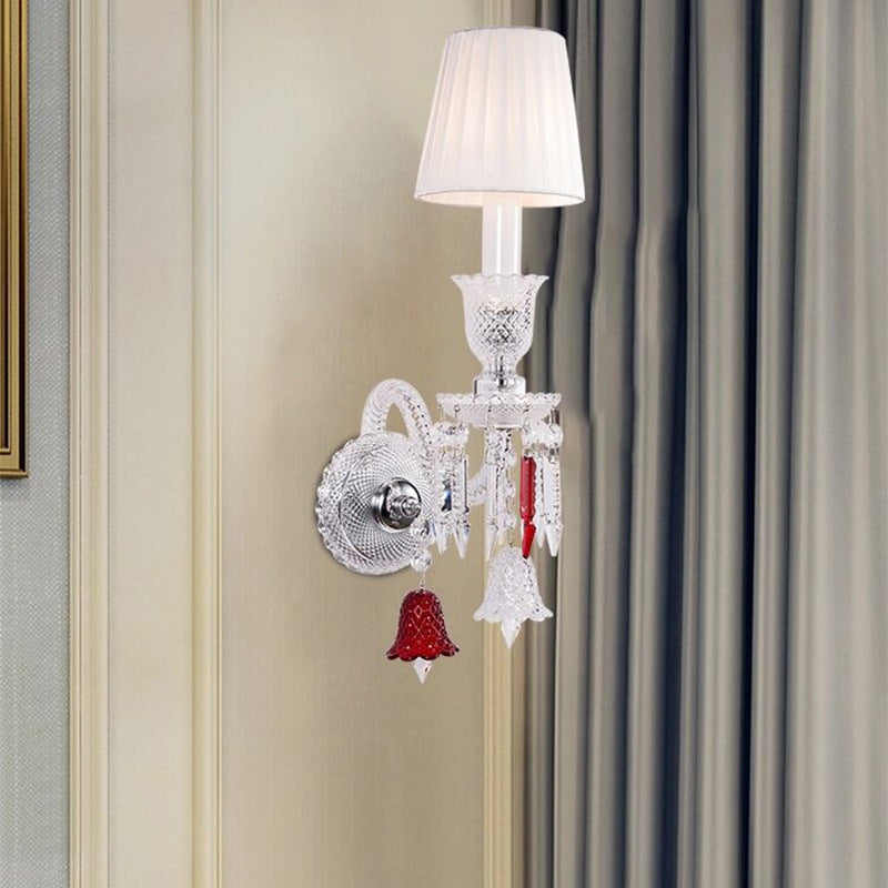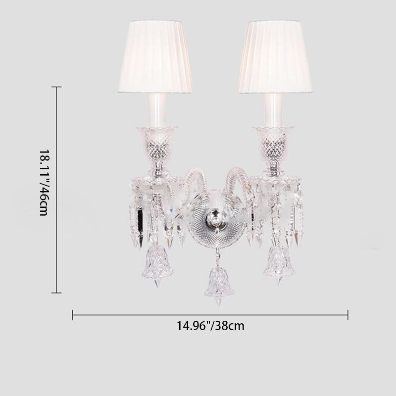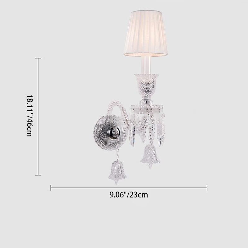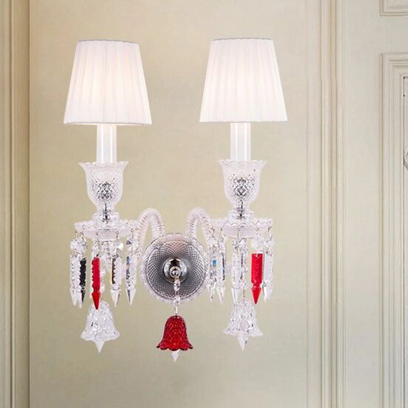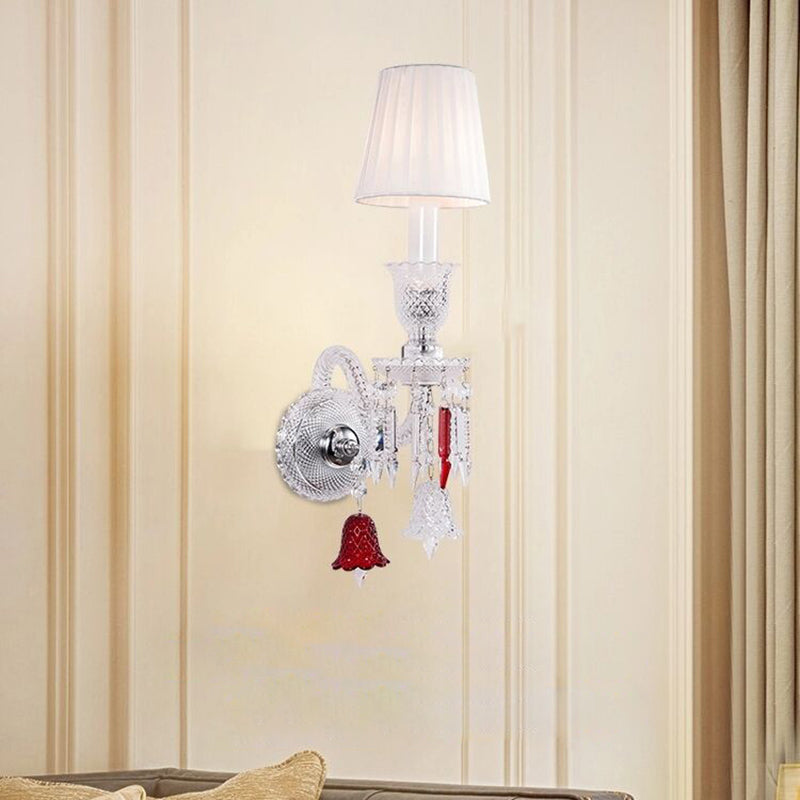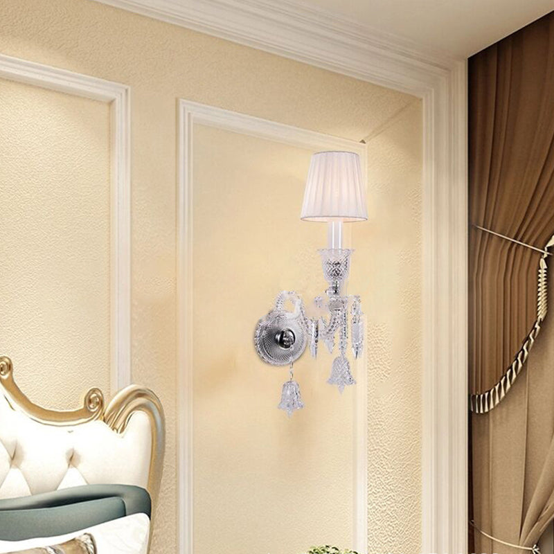 Traditional European Glass Crystal Candlestick Fabric Shade 1/2-Light Wall Sconce Lamp For Living Room