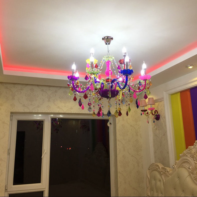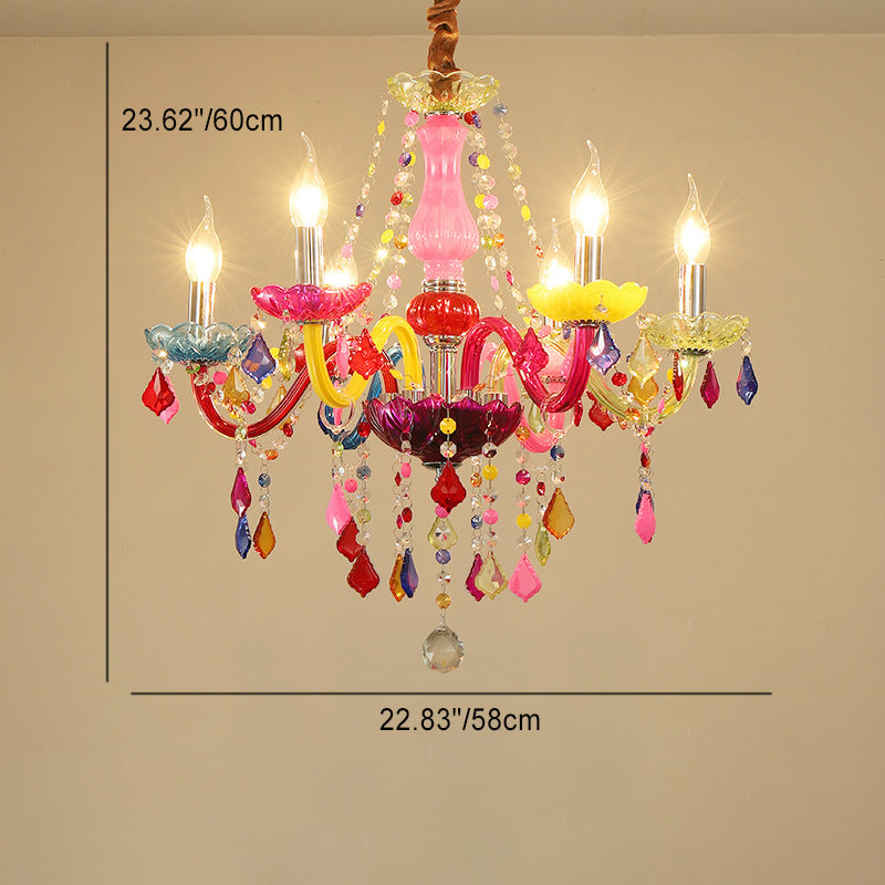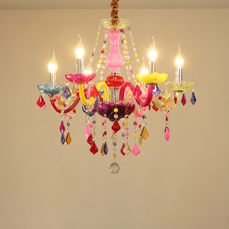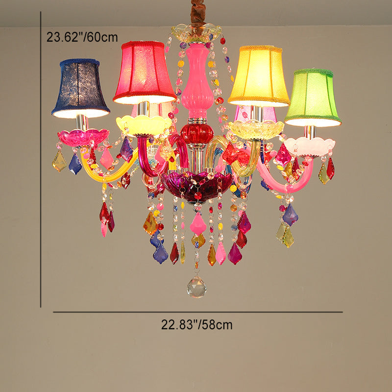 Traditional European Glass Crystal Metal Fabric Candlestick Holder Inflorescence 6-Light Chandeliers For Living Room