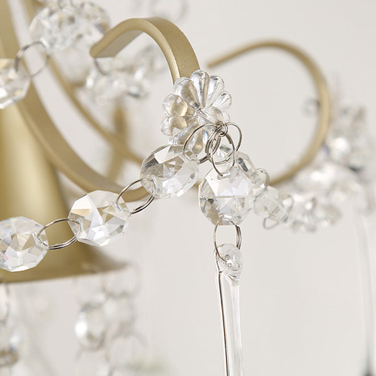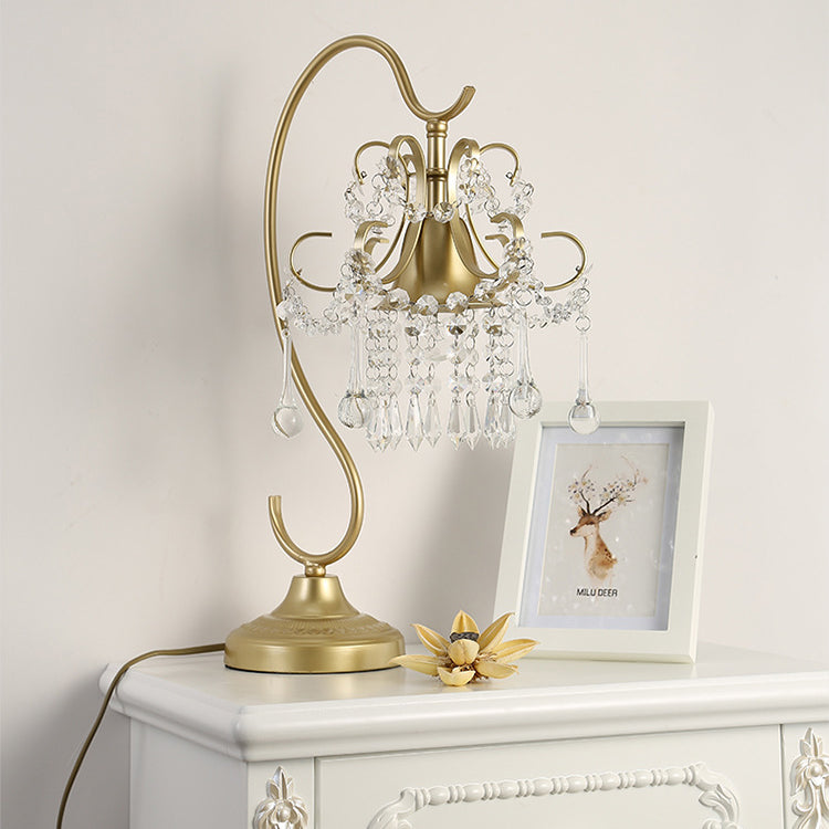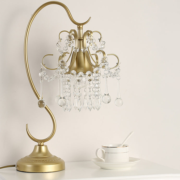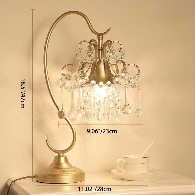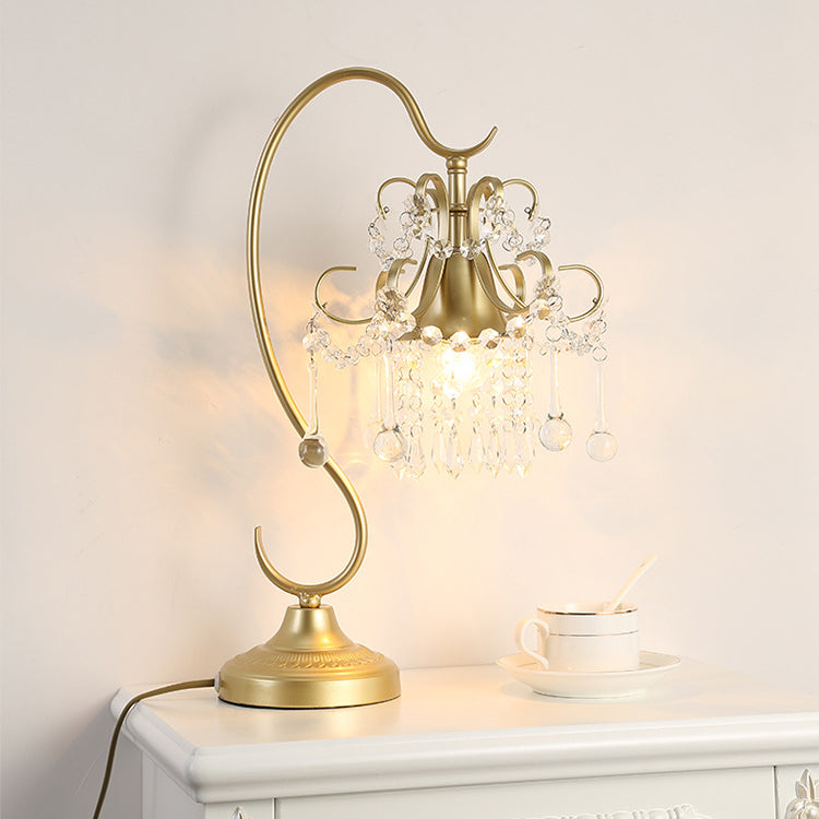 Traditional European Metal Hardware Crystal Teardrop Pendant Trumpet 1-Light Table Lamp For Bedroom