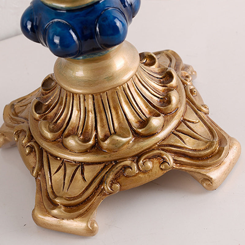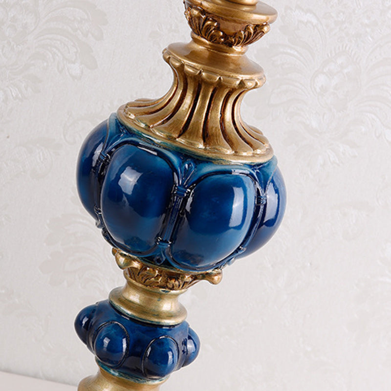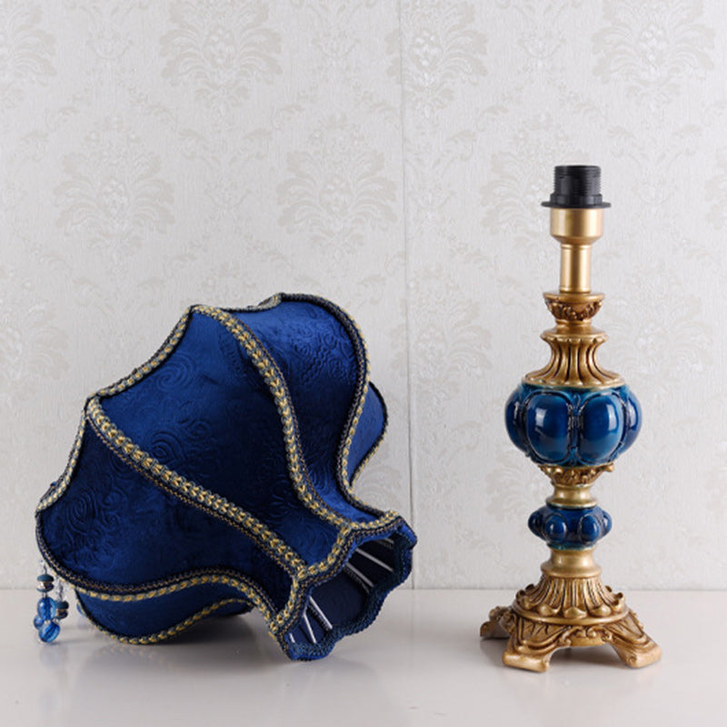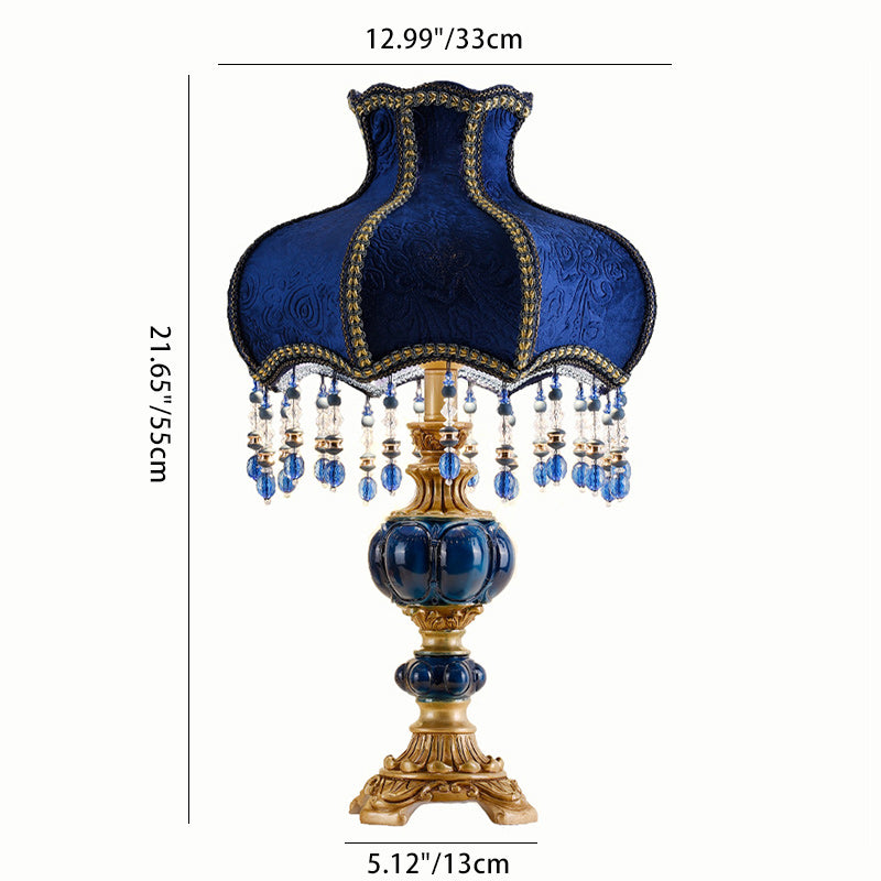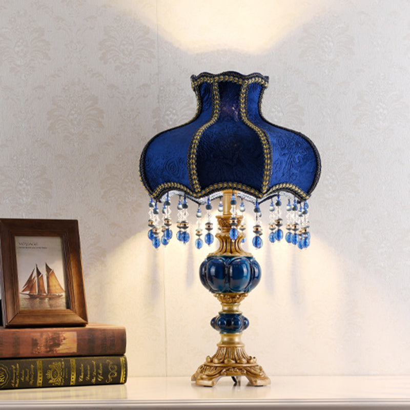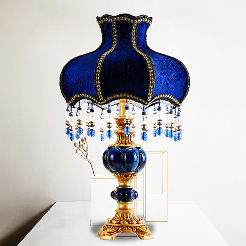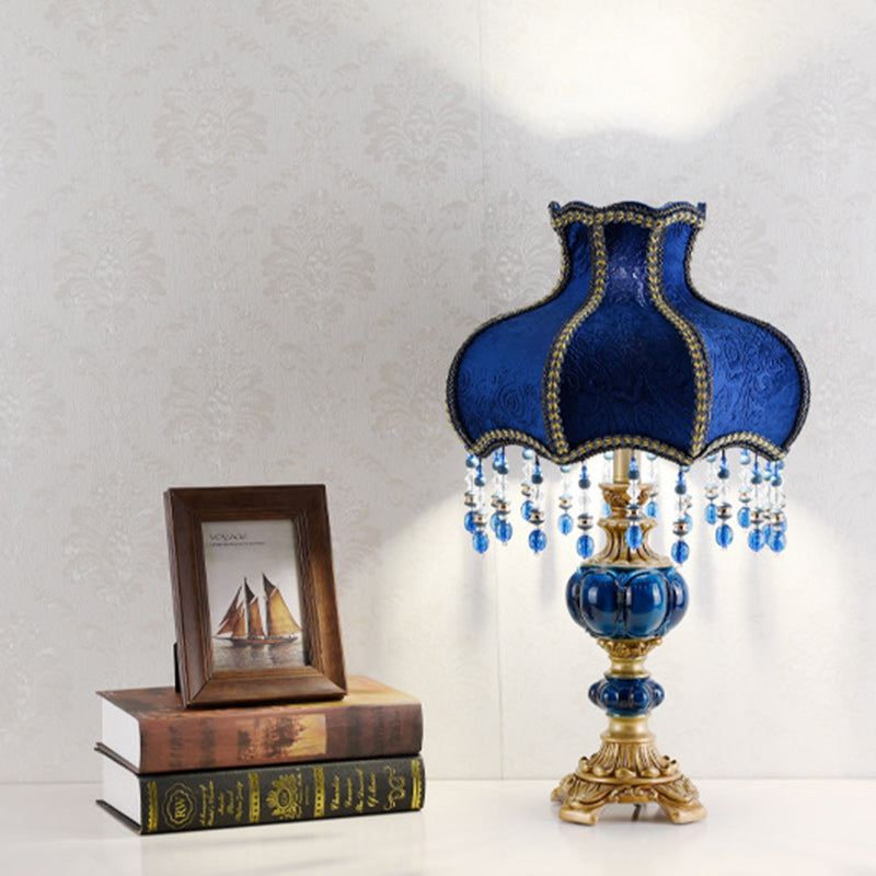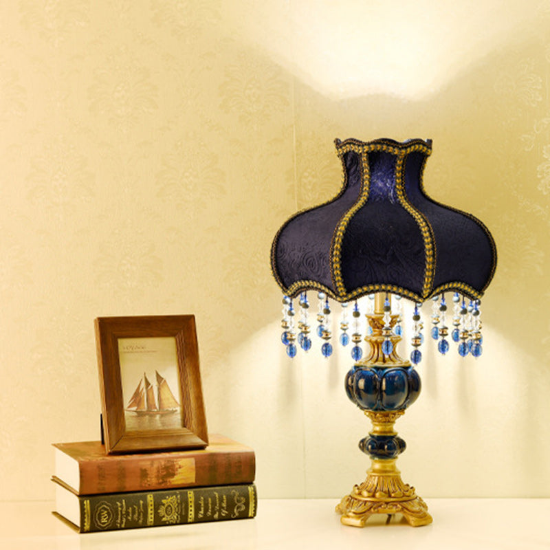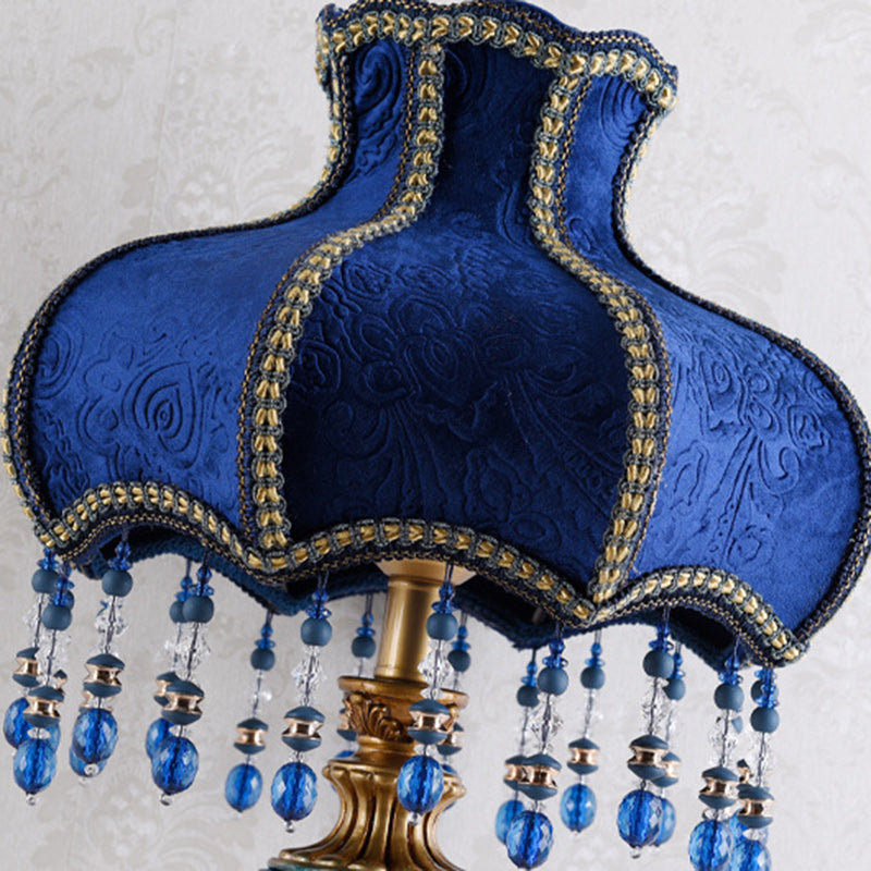 Traditional European Resin Fabric Lace Beads Floral 1-Light Table Lamp For Bedside