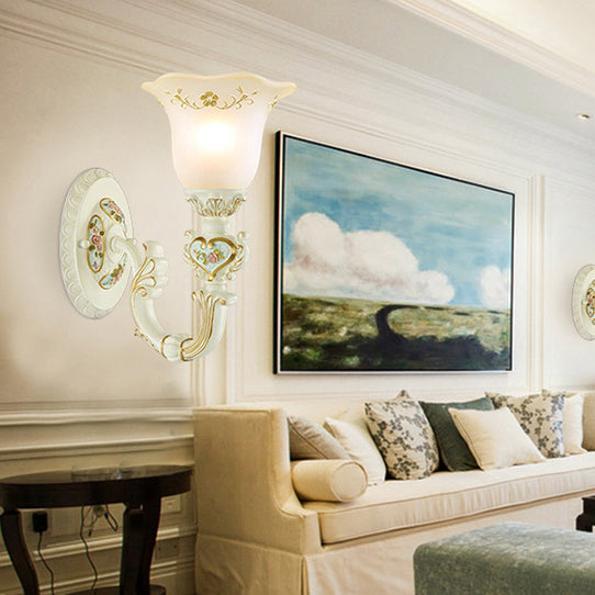 Traditional European Resin Glass Floral Carved 1-Light Wall Sconce Lamp For Bedside