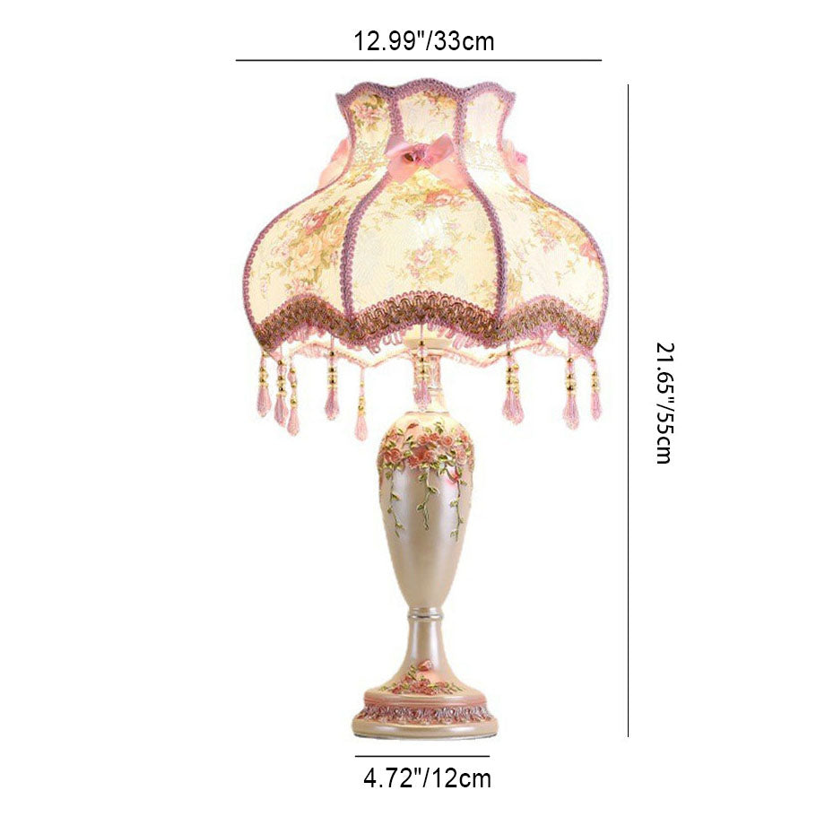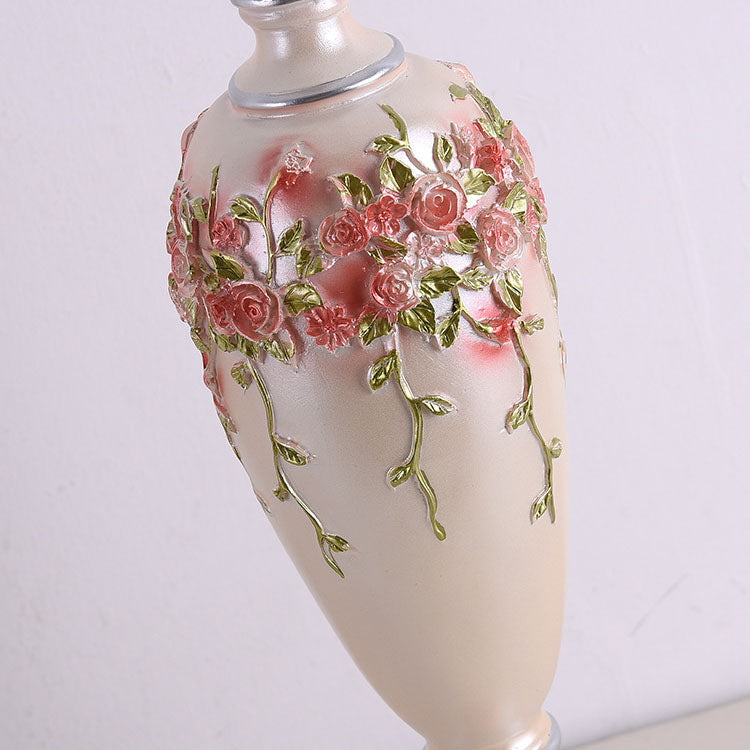 Traditional European Rose Vase Base Resin Fabric 1-Light Table Lamp For Bedroom