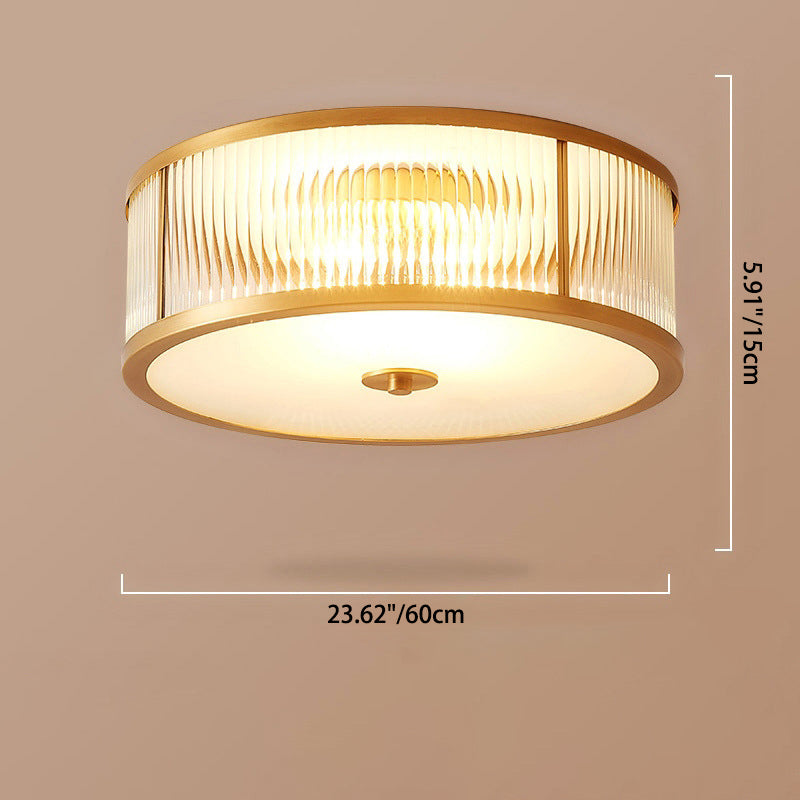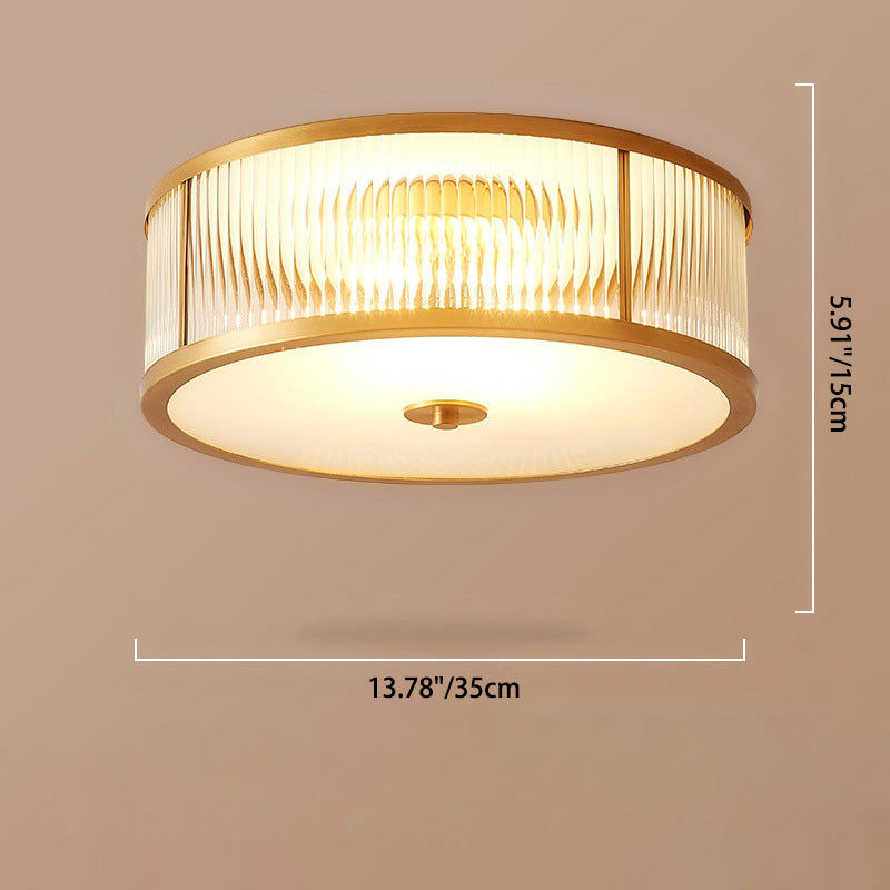 Traditional European Round Copper Glass 3/4/6 Light Flush Mount Ceiling Light For Living Room