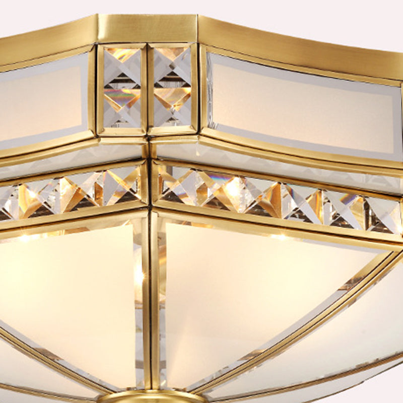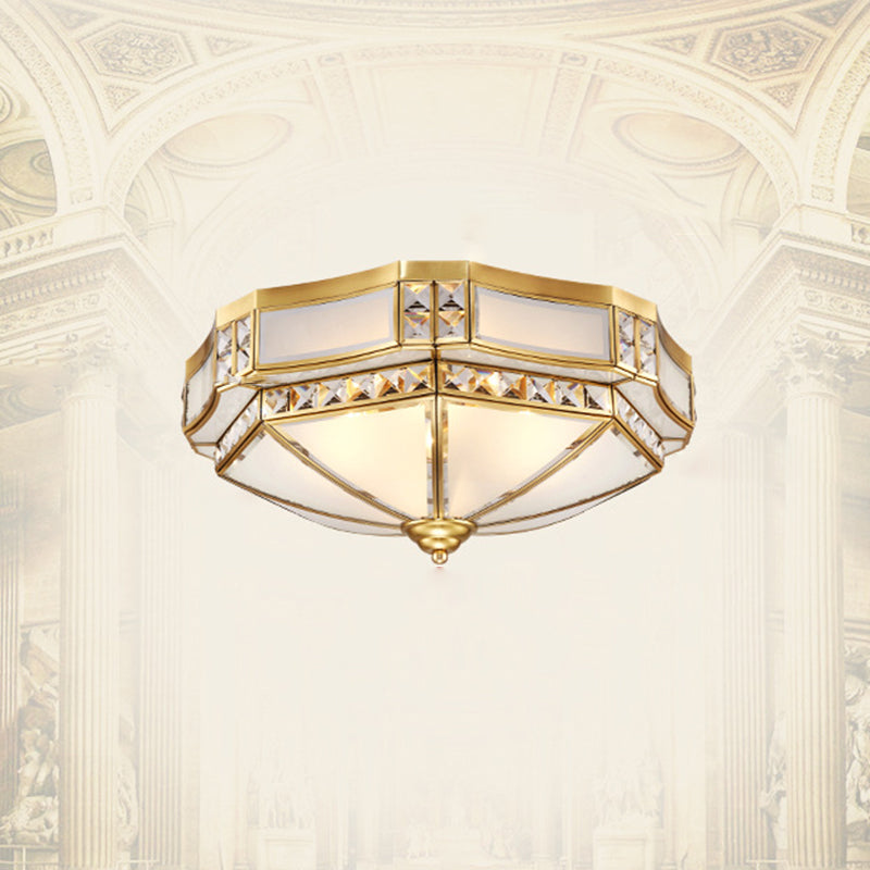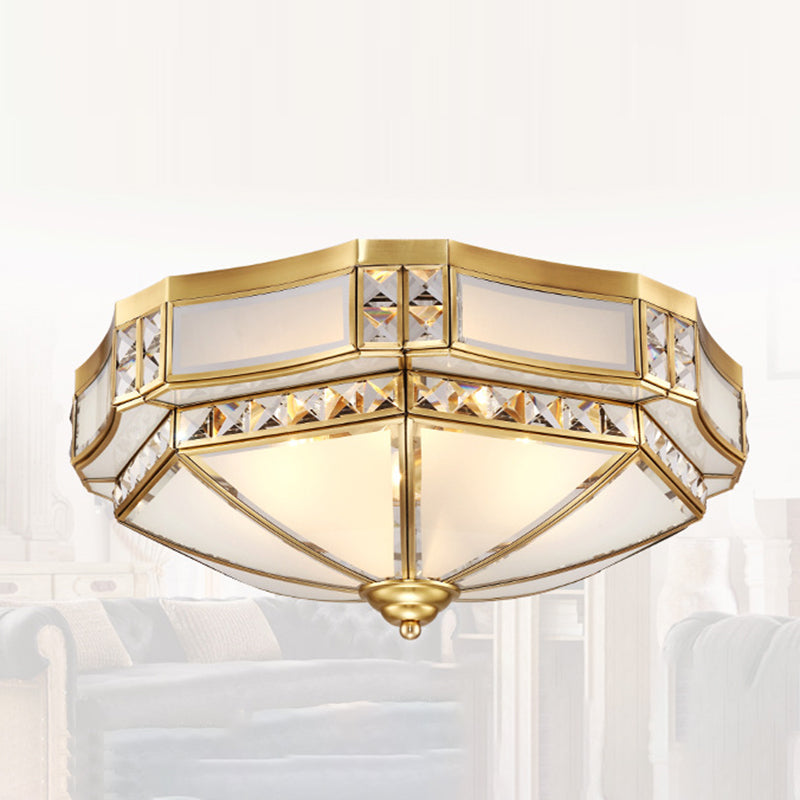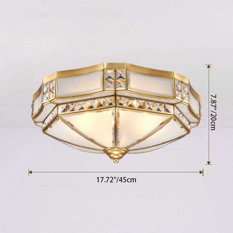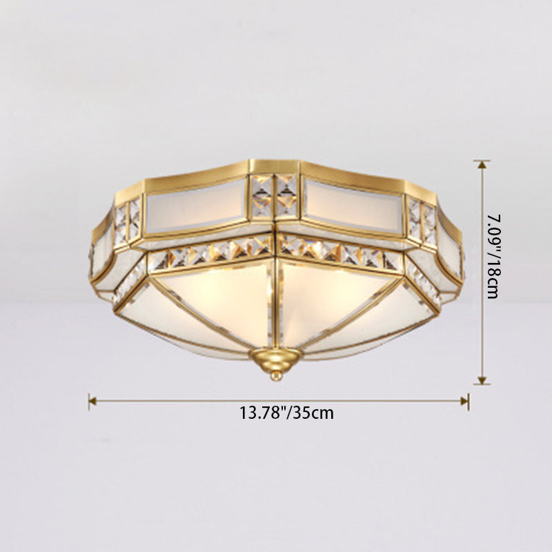 Traditional European Round Copper Glass 3/4-Light Flush Mount Ceiling Light For Living Room