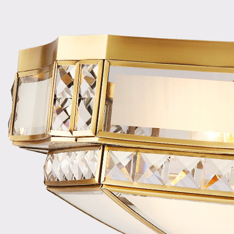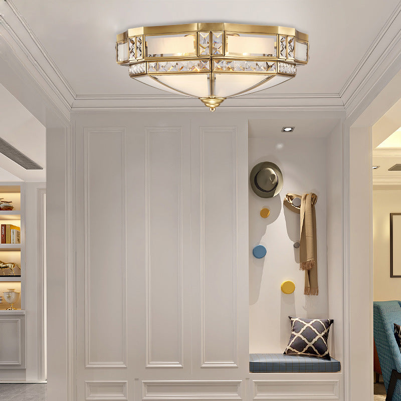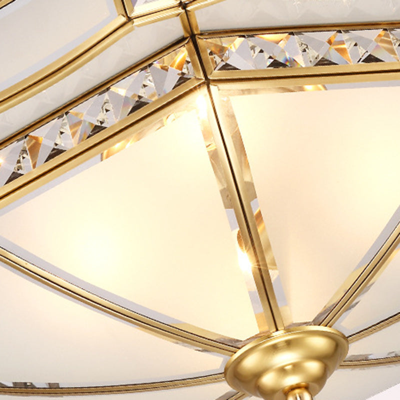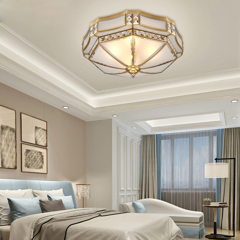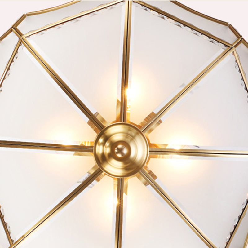 Traditional European Round Copper Glass 3/4-Light Flush Mount Ceiling Light For Living Room